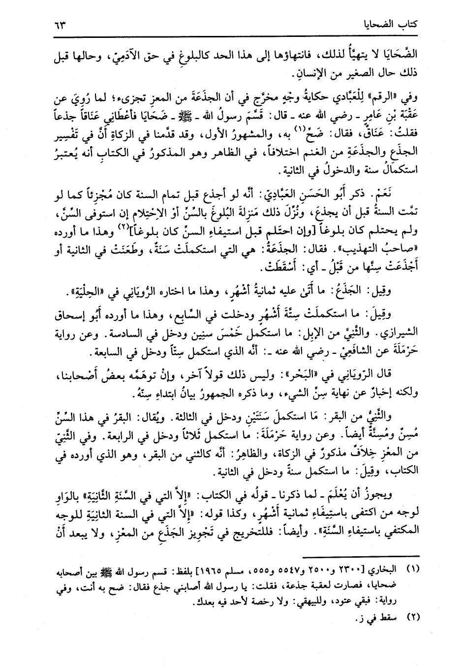 (¬1) البخاري [2300 و 2500 و 5547 و 555، مسلم 1965] بلفظ: قسم رسول الله -صلى الله عليه وسلم- بين أصحابه ضحايا، فصارت لعقبة جذعة، فقلت: يا رسول الله أصابني جذع فقال: ضح به أنت، وفي رواية: فبقي عتود، وللبيهقي: ولا رخصة لأحد فيه بعدك.