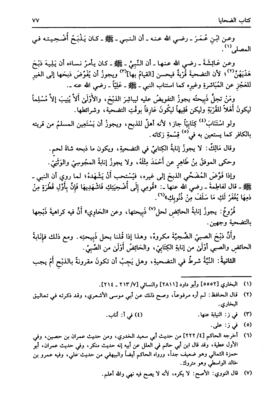 وعن عَائِشَةَ -رضي الله عنها- أن النَّبِيِّ -صلى الله عليه وسلم- كان يأمرُ نساءَه أن يَلِيهَ ذبْحَ هَدْيَهُنَّ (¬2)؛ لأن التضحيةَ قُرْبةٌ فيحسن [القيامُ بها] (¬3) ويجوزُ أن يُفَوِّضَ ذبحَها إلى الغيرِ للعَجْزِ عن المُبَاشرةِ وغيرِه كما استناب النبي -صلى الله عليه وسلم- عَلِيّاً -رضي الله عنه-.