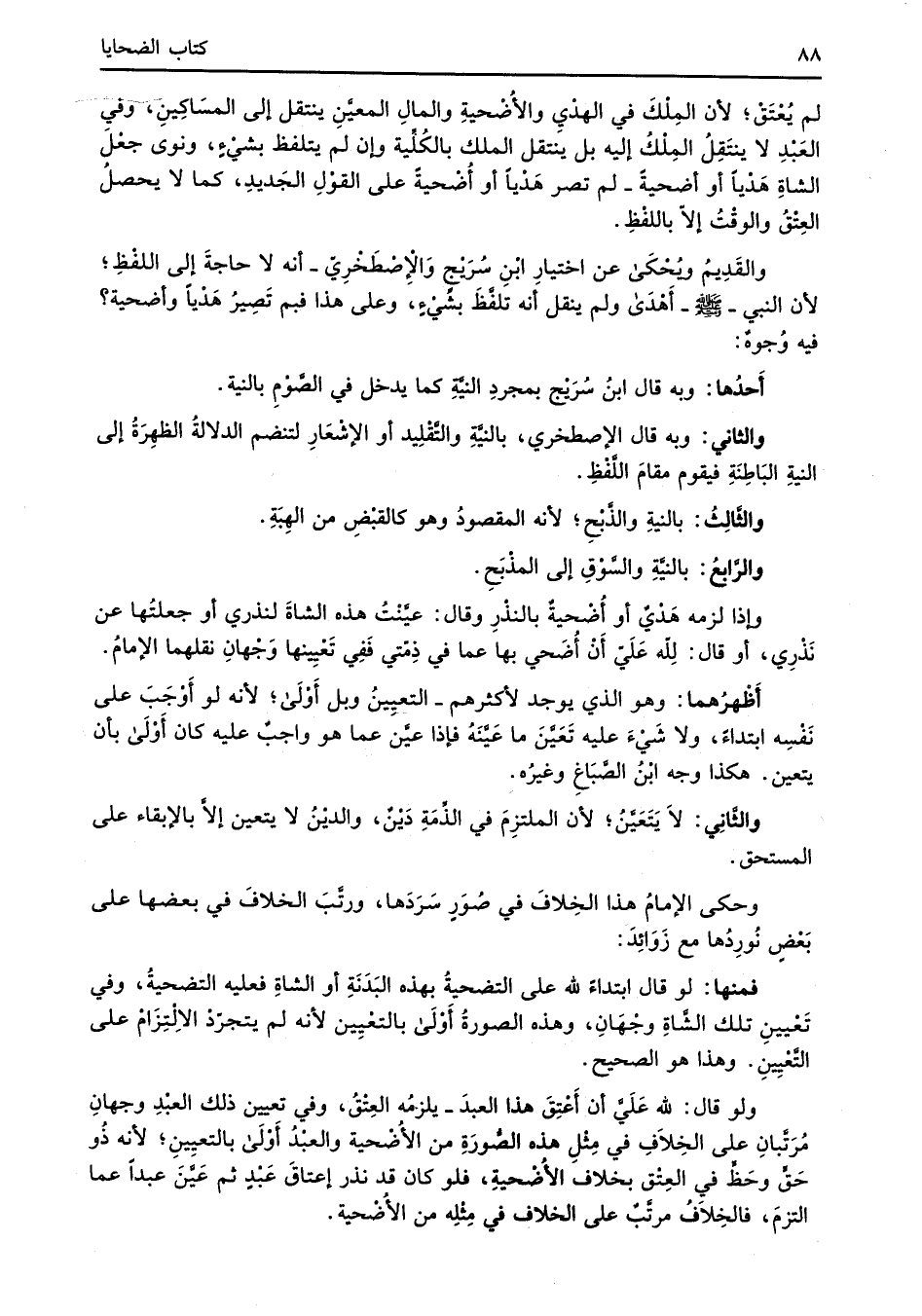 فمنها: لو قال ابتداء لله على التضحية بهذه البَدَنَةِ أو الشاةِ فعليه التضحيةُ، وفي تَعْيينِ تلك الشَّاةِ وجْهَانِ، وهذه الصورةُ أَوْلَى بالتعْيِين لأنه لم يتجرّدْ الاِلْتِزَامْ على التَّعْيِينِ. وهذا هو الصحيح.