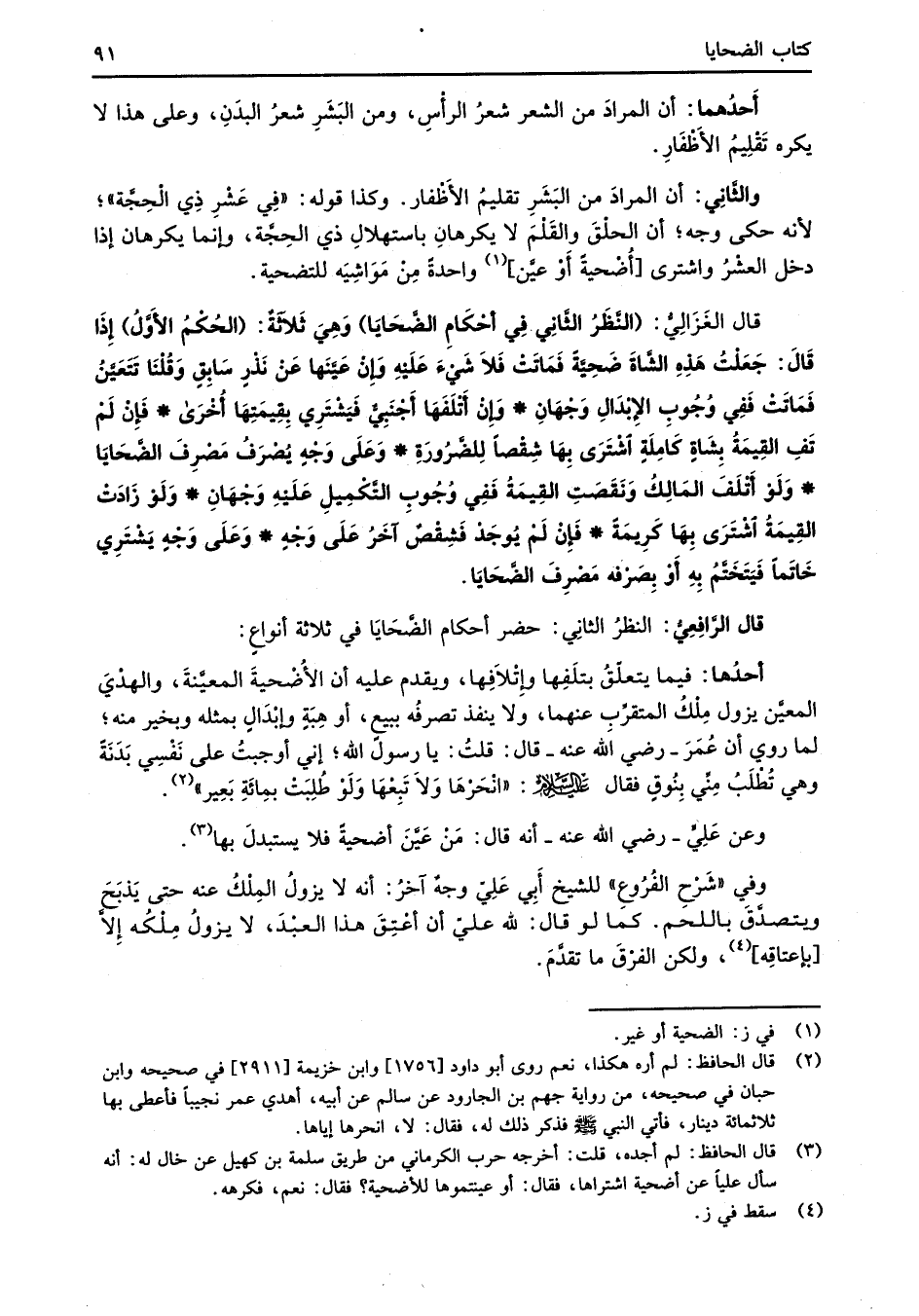 قال الرَّافِعِيُّ: النظرُ الثانِي: حضر أحكام الضَّحَايَا في ثلاثة أنواع: