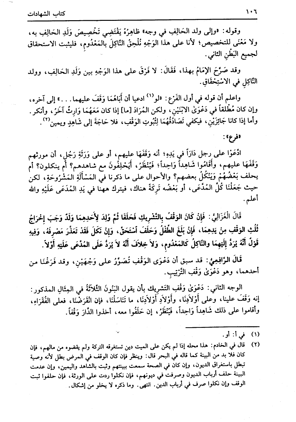 الوجه الثاني: دَعْوَى وَقْفِ التَشرِيك بان يقول البَنُونَ الثَّلاثَةُ فِي المِثَالِ المذكور: إنه وَقَفَ علينا، وعلى أَوْلاَدِنَا، وأَوْلاَدِ أَوْلاَدِنَا، ما تَنَاسَلْنَا، فإن انْقَرَضْنَا، فعلى الفُقَرَاءِ، وأقاموا على ذلك شَاهِداً وَاحِداً، فَيُنْظَرُ، إن حَلَفُوا معه، أخذوا الدَّارَ وَقْفاً.