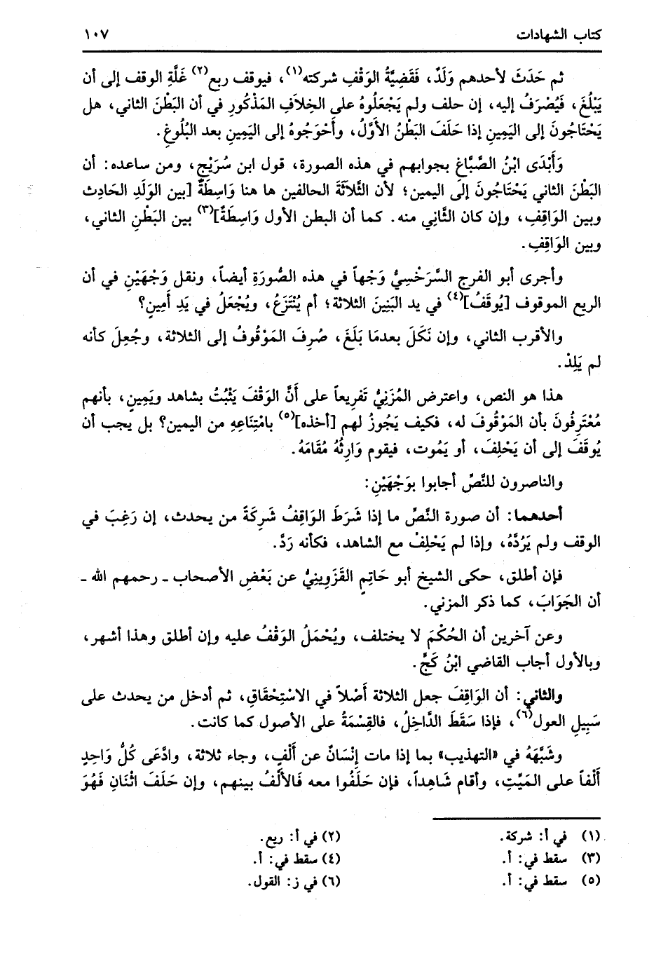 وَأَبْدَى ابْنُ الصَّبَّاغِ بجوابهم في هذه الصورة، قول ابن سُرَيْج، ومن ساعده: أن البَطْنَ الثاني يَحْتَاجُونَ إلى اليمين؛ لأن الثَّلاثَةَ الحالفين هاهنا وَاسِطَةٌ [بين الولَدِ الحَادِث وبين الوَاقِفِ، وإن كان الثَّانِي منه. كما أن البطن الأول وَاسِطَةٌ] (¬3) بين البَطْنِ الثاني، وبين الوَاقِفِ.