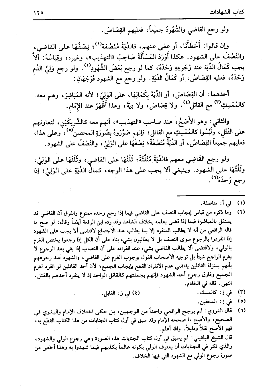 (¬2) وما ذكره من قياس إيجاب النصف على القاضي فيما إذا رجع وحده ممنوع والفرق أن القاضي قد يستقل بالمباشرة فيما إذا قضى بعلمه بخلاف الشاهد وقد رده ابن الرفعة أيضاً وقال: لو صح ما قاله الرافعي من أنه لا يطالب المنفرد إلا بما يطالب عند الاجتماع لاقتضى ألا يجب على الشهود إذا انفردوا بالرجوع سوى النصف بل لا يطالبون بشيء بناء على أن الكل إذا رجعوا يختص الغرم بالولي، ولاقتضى ألا يطالب القاضي بشيء عند انفراده على أن النصاب إذا بقي بعد الرجوع لا يغرم الراجح شيئاً بل توجيه الأصحاب القول بوجوب الغرم على القاضي، والشهود عند رجوعهم بأنهم بمنزلة القاتلين يقتضي عدم الانفراد القطع بإيجاب الجميع؛ لأن أحد القاتلين لو انفرد لغرم الجميع وفارق رجوع أحد الشهود فإنهم بجملتهم كالقاتل الواحد إذ لا ينفرد أحدهم بالقتل. انتهى. قاله في الخادم.
