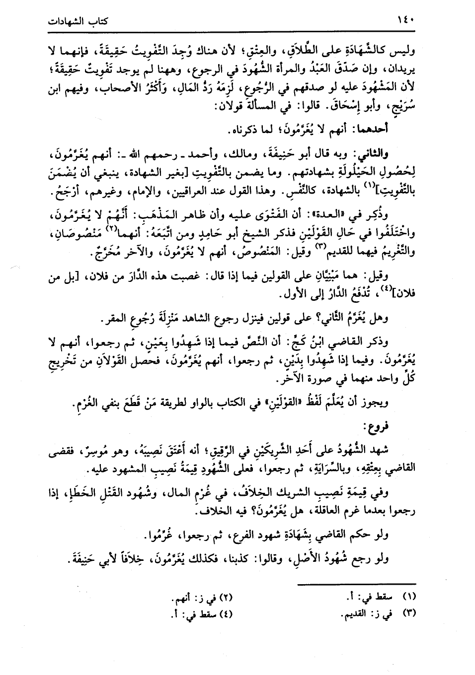 وليس كالشَّهَادَةِ على الطَّلاَقِ، والعِتْقِ؛ لأن هناك وُجِدَ التَّفْوِيتُ حَقِيقَةً، فإنهما لا يريدان، وإن صَدّقَ العَبْدُ والمرأة الشُّهُودَ في الرجوع، وهاهنا لم يوجد تَفوِيتٌ حَقِيقَةً؛ لأن المَشْهُودَ عليه لو صدقهم في الرُّجُوعِ، لَزمَهُ رَدُّ المَالِ، وَأكْثَرُ الأصحاب، وفيهم ابن سُرَيْجٍ، وأبو إِسْحَاقَ. قالوا: في المسألة قولان: