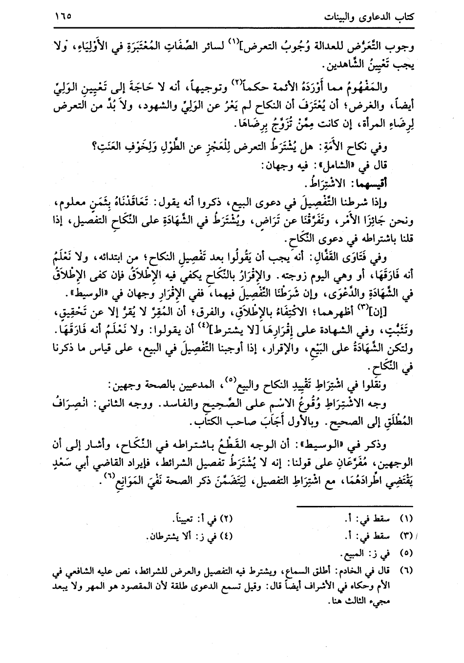 وذكر في "الوسيط": أن الوجه القَطْعُ باشتراطه في النِّكَاح، وأشار إلى أن الوجهين، مُفَرَّعَانِ على قولنا: إنه لا يُشْتَرَطُ تفصيل الشرائط، فإيراد القاضي أبي سَعْدٍ يقْتَضِي اطِّرادَهُمَا، مع اشْتِرَاطِ التفصيل، لِيَتَضَمَّنَ ذكر الصحة نَفْيَ المَوَانِعِ (¬6).