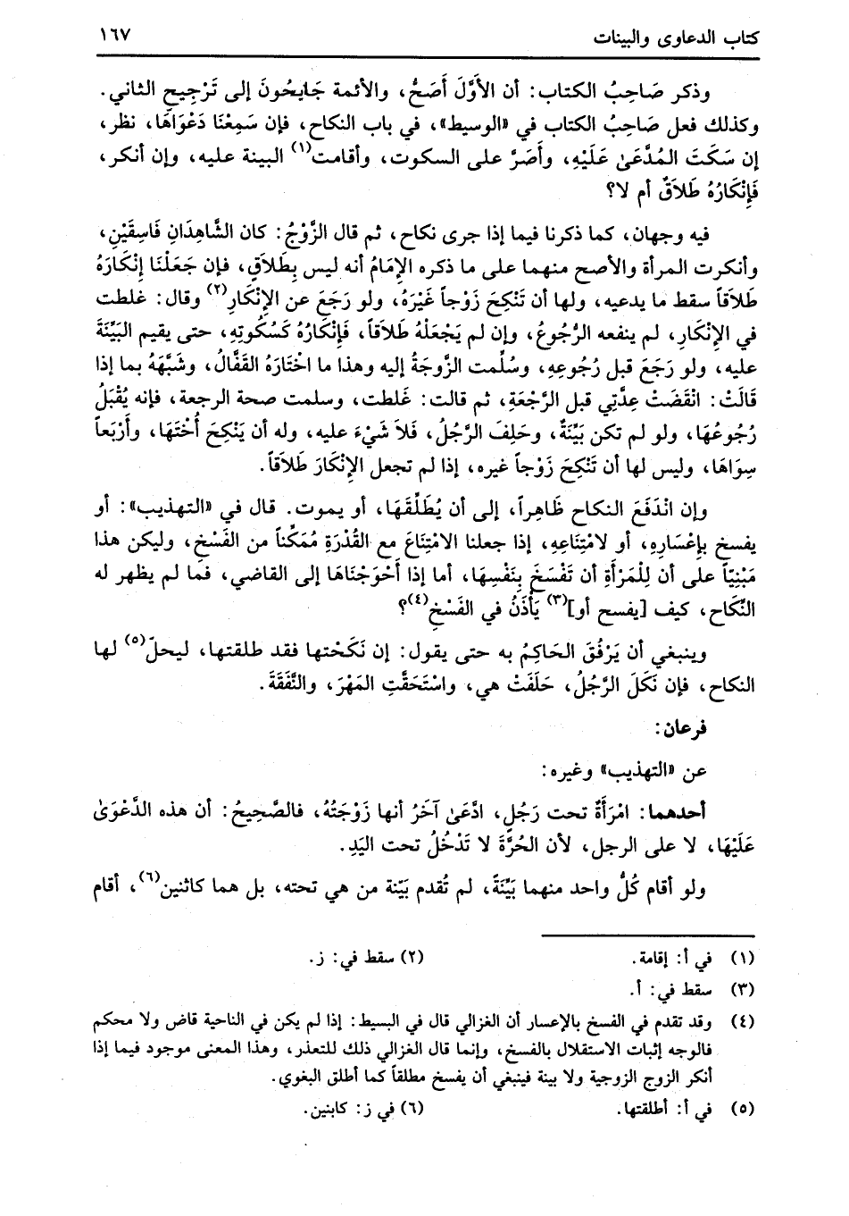 (¬4) وقد تقدم في الفسخ بالإعسار أن الغزالي قال في البسيط: إذا لم يكن في الناحية قاض ولا محكم فالوجه إثبات الاستقلال بالفسخ، وإنما قال الغزالي ذلك للتعذر، وهذا المعنى موجود فيما إذا أنكر الزوج الزوجية ولا بينة فينبغي أن يفسخ مطلقاً كما أطلق البغوي.