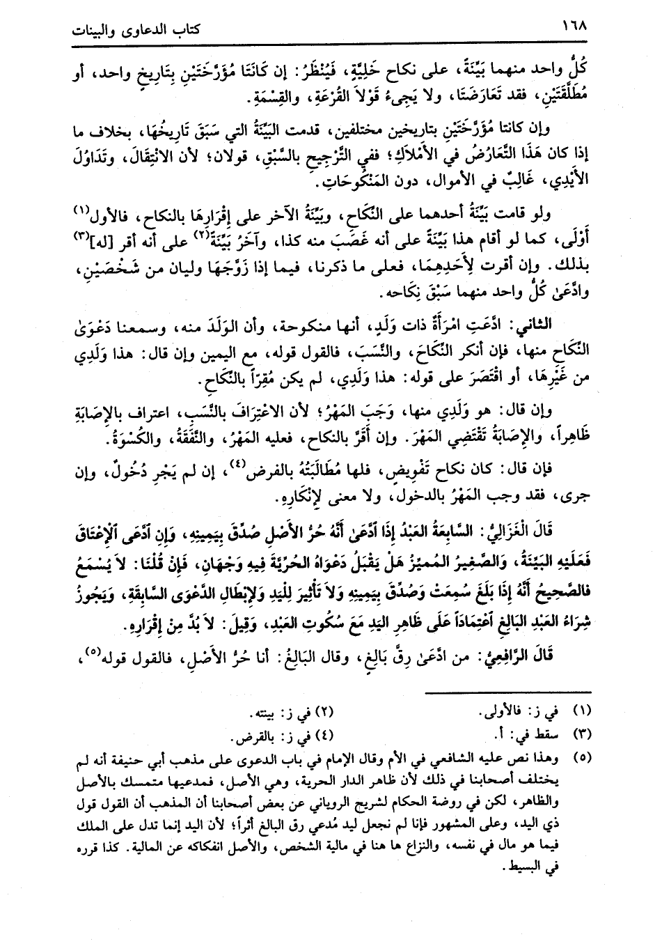 قَالَ الغَزَالِيُّ: السَّابِعَةُ العَبْدُ إِذَا ادَّعَى أنَّهُ حُرُّ الأَصْلِ صُدِّقَ بِيَمِينِهِ، وَاِنِ ادَّعَى الإِعْتَاقَ فَعَلَيْهِ البَيِّنةُ، وَالصَّغِيرُ المُميِّزُ هَلْ يَقْبَلُ دَعْوَاهُ الحُرِّيَّةَ فِيهِ وَجْهَانِ، فَإنْ قُلْنَا: لاَ يُسْمَعُ فالصَّحِيحُ أنَّهُ إِذَا بَلَغَ سُمِعَتْ وَصُدَّقَ بِيَمِينِهِ وَلاَ تَأثِيرَ لِلْيَدِ وَلإِبْطَالِ الدَّعْوَى السَّابِقَةِ، وَيَجُوزُ شِرَاءُ العَبْدِ البَالِغِ اعْتِمَادَاً عَلَى ظَاهِرِ اليَدِ مَعَ سُكُوتِ العَبْدِ، وَقِيلَ: لاَ بُدَّ مِنْ إِقْرَارِهِ.