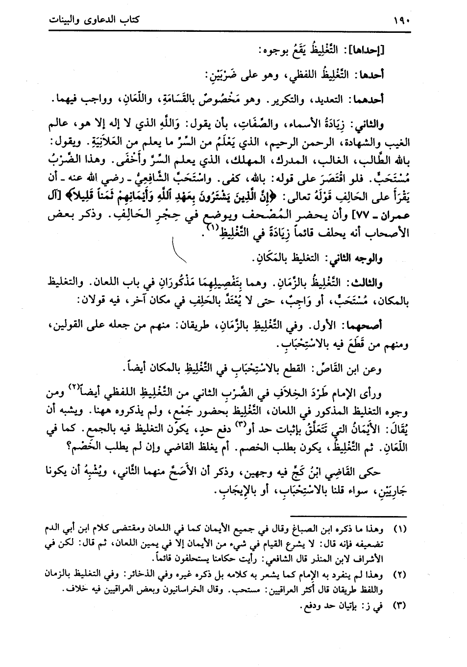 (¬2) وهذا لم ينفرد به الإِمام كما يشعر به كلامه بل ذكره غيره وفي الذخائر: وفي التغليظ بالزمان واللفظ طريقان قال أكثر العراقيين: مستحب. وقال الخراسانيون وبعض العراقيين فيه خلاف.