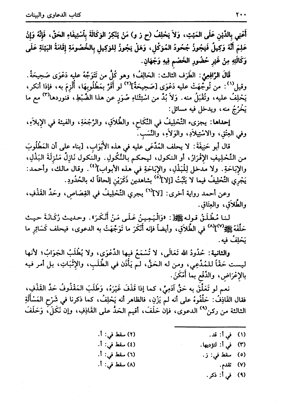 والثانية: حُدُودُ الله تَعَالَى، لا تُسْمَعُ فيها الدَّعْوَى، ولا يُطْلَبُ الجَوَابُ؛ لأنها ليست حَقّاً للمُدَّعِي، ومن له الحَقُّ، لم يَأْذَن في الطَّلَبِ، والإِثْبَاتِ، بل أمر فيه بالإِعْرَاضِ، والدَّفْعِ بما أَمْكَنَ.