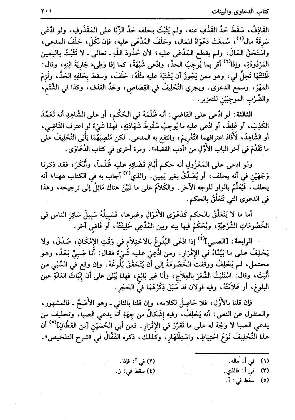 الرابعة: [الصبي] (¬4) إذا ادَّعَى البُلُوغَ بالاحْتِلاَم في وَقْتِ الإمْكَانِ، صُدِّقَ، ولا يَحْلِفُ على ما بَيَّنَّاهُ في الإِقْرَارِ. ومن ادُّعِيَ عليه شَيْءٌ فقال: أَما صَبِيٌّ بَعْدُ، وهو محتمل، لم يَحْلِفْ ووقفتَ الخُصْومَةُ إلى أن يُتَحَقَّقَ بُلُوغُهُ. وإن وقع في السَّبْي من أَنْبَتَ، وقال: اسْتَنْبَتُّ الشَّعَرَ بالعِلاجَ، وأنا غير بَالِغ، فهذا يُبْنَى على أن إِنْبَاتَ العَانَةِ عين البلوغ، أو عَلاَمَتُهُ، وفيه قولان قد سَبَقَ ذِكْرُهُمَا في الحَجْرِ.