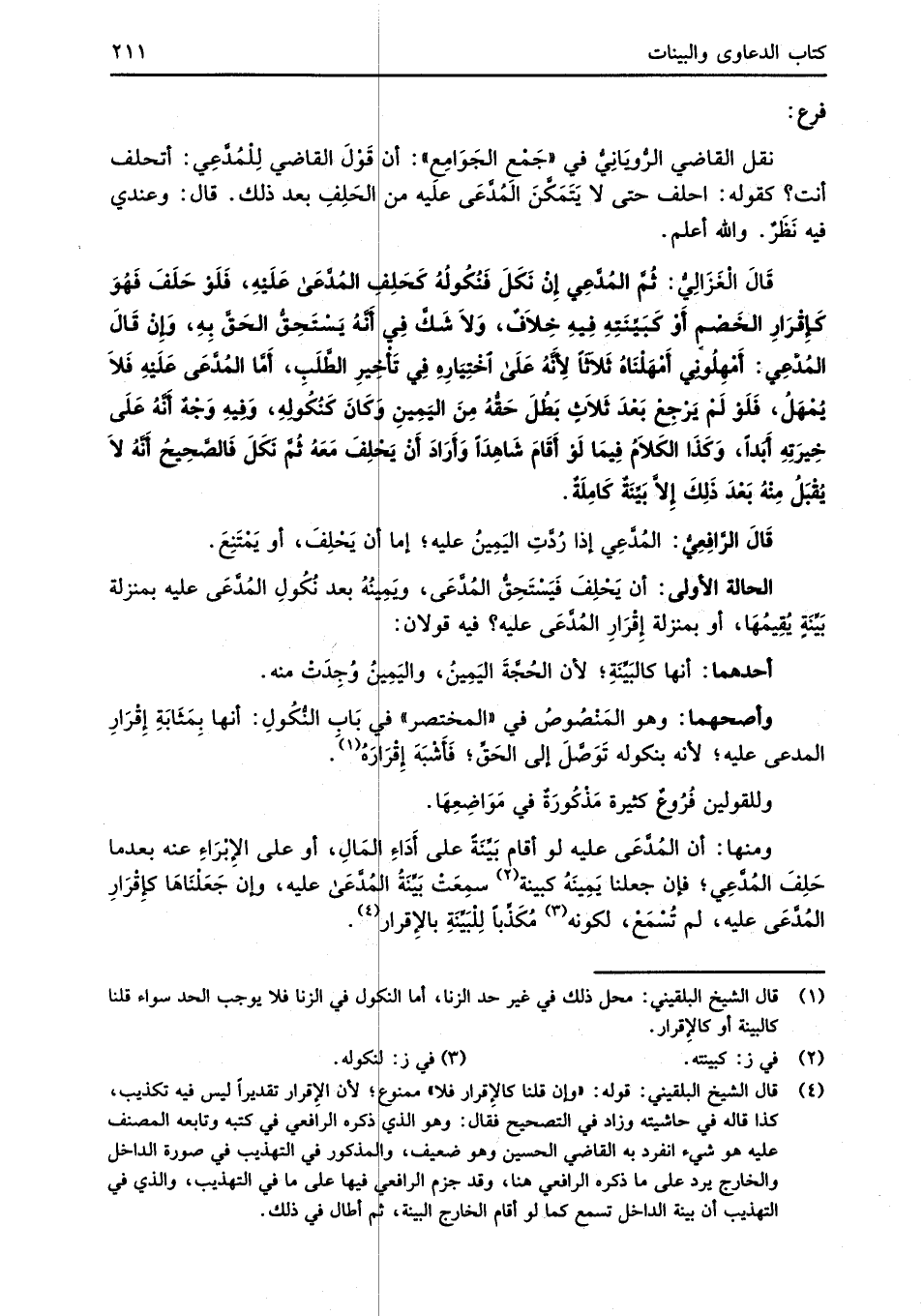(¬1) قال الشيخ البلقيني: محل ذلك في غير حد الزنا، أما النكول في الزنا فلا يوجب الحد سواء قلنا كالبينة أو كالإقرار.