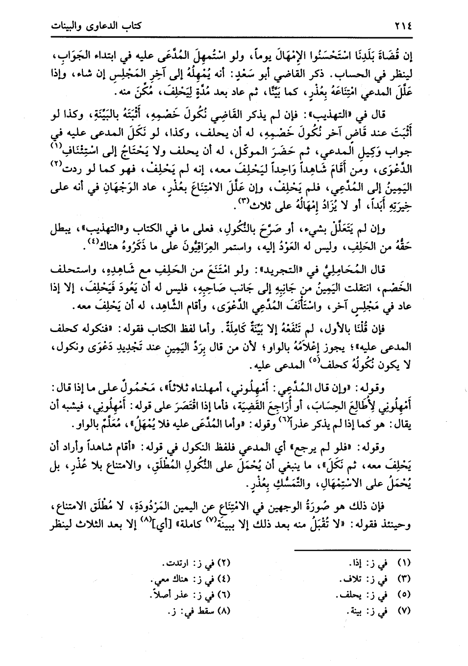 وقوله: "وإن قال المُدَّعِي: أَمْهِلُوني، أمهلناه ثلاثاً"، مَحْمُولٌ على ما إذا قال: أَمْهِلُونِي لِأُطَالِعَ الحِسَابَ، أو أُرَاجِعَ القَضِيَة، فأما إذا اقْتَصَرَ على قوله: أَمْهِلُونِي، فيشبه أن يقال: هو كما إذا لم يذكر عذراً (¬6) وقوله: "وأما المُدَّعَى عليه فلا يُمْهَلُ"، مُعَلَّمٌ بالواو.