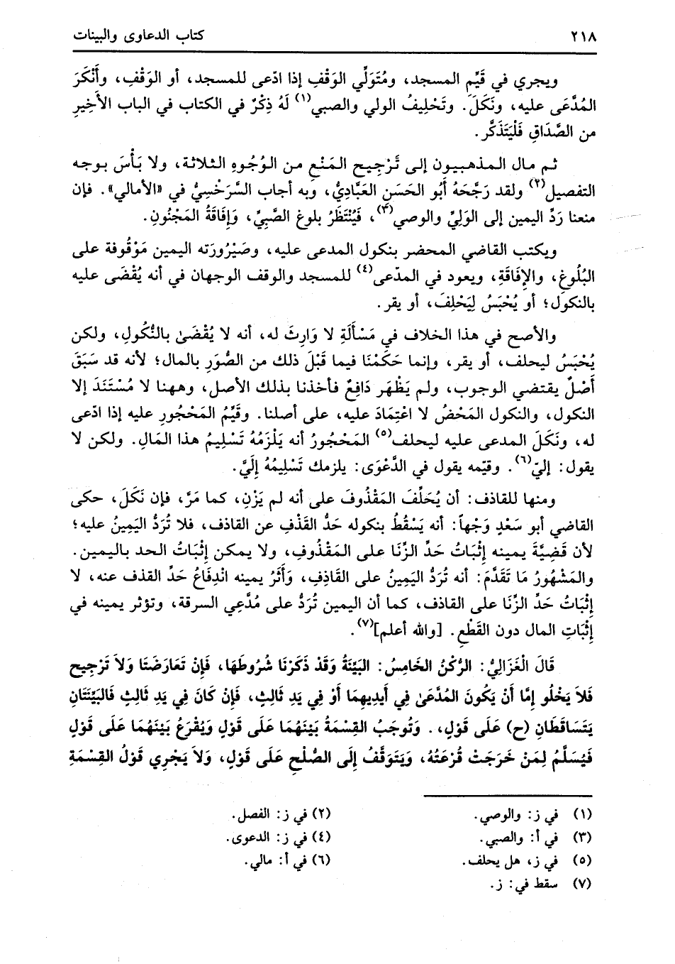 والأصح في هذا الخلاف في مَسْأَلَةِ لا وَارِثَ له، أنَّه لا يُقْضَى بالنُّكُولِ، ولكن يُحْبَسُ ليحلف، أو يقر، وإنما حَكَمْنَا فيما قَبْلَ ذلك من الصُّوَرِ بالمال؛ لأنه قد سَبَقَ أَصْلٌ يقتضي الوجوب، ولم يَظْهَر دَافِعٌ فأخذنا بذلك الأصل، وهاهنا لا مُسْتَنَدَ إلا النكول، والنكول المَحْضُ لا اعْتِمَادَ عليه، على أصلنا. وقَيِّمُ المَحْجُورِ عليه إذا ادَّعَى له، ونَكَلَ المدعى عليه ليحلف (¬5) المَحْجُورُ أنَّه يَلْزَمُهُ تَسْلِيمُ هذا المَالِ. ولكن لا يقول: إليّ (¬6). وقيّمه يقول في الدَّعْوَى: يلزمك تَسْلِيمُهُ إِليَّ.