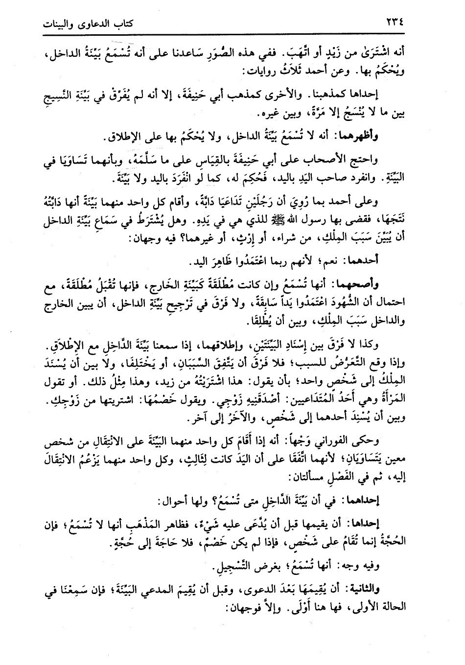أنه اشْتَرَى من زَيْدٍ أو اتَّهَبَ. ففي هذه الصُّوَرِ سَاعدنا على أنَّه تُسْمَعُ بَيِّنَةُ الداخل، ويُحْكَمُ بها. وعن أحمد ثَلاَثُ روايات: