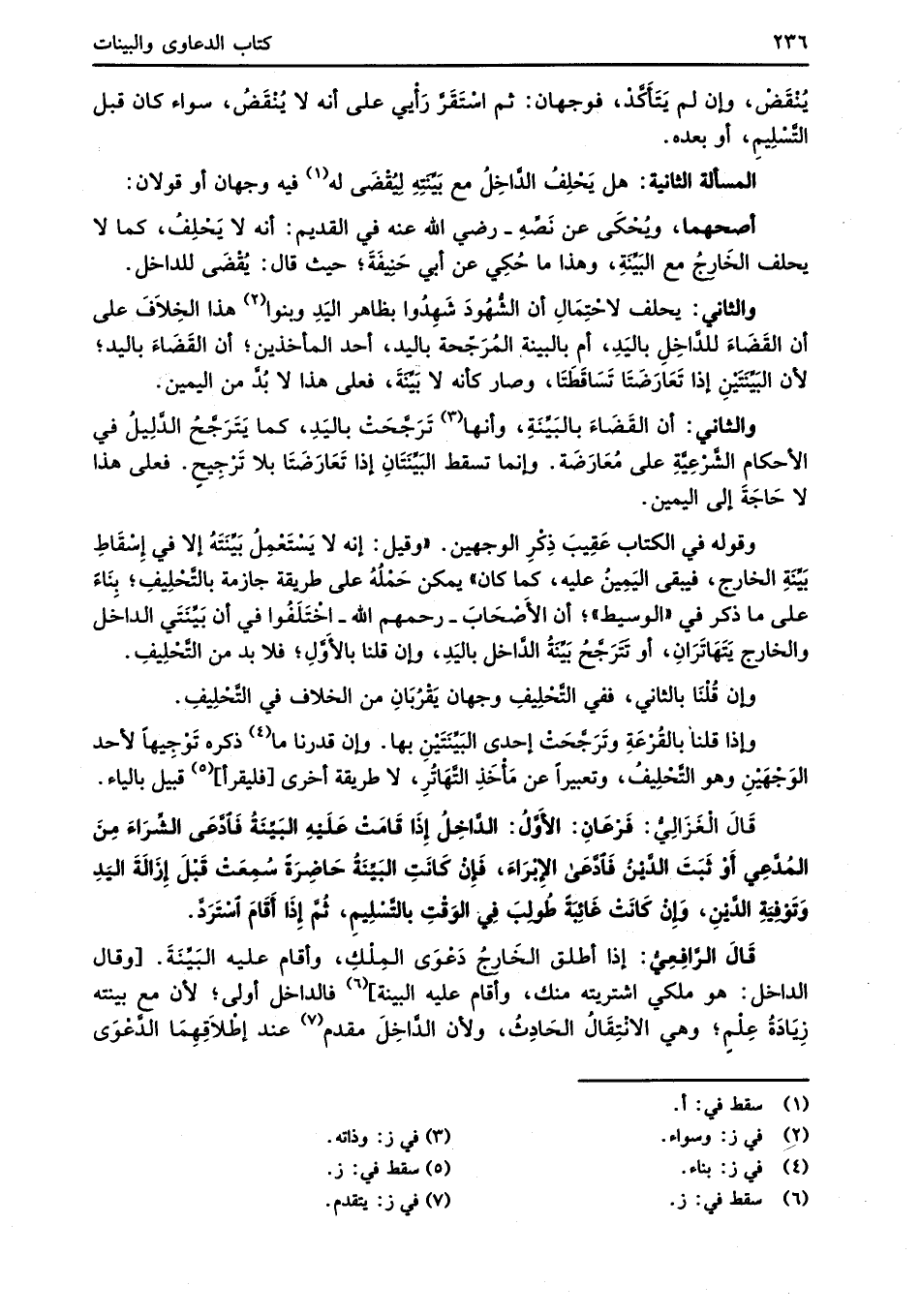 قَالَ الْغَزَالِيُّ: فَرْعَانِ: الأَوَّلُ: الدَّاخِلُ إِذَا قَامَتْ عَلَيْهِ البيِّنةُ فَادَّعَى الشِّرَاءَ مِنَ المُدَّعِي أَوْ ثَبَتَ الدَّيْنُ فَادَّعَى الإبْرَاءَ، فَإنْ كَانَتِ البَيِّنةُ حَاضِرَةً سُمِعَتْ قَبْلَ إزَالَةَ اليَدِ وَتَوْفِيَةِ الدَّيْنِ، وَإِنْ كَانَتْ غَائِبَةً طُولِبَ فِي الوَقْتِ بالتَّسْلِيمِ، ثُمَّ إِذَا أَقَامَ اسْتَرَدَّ.