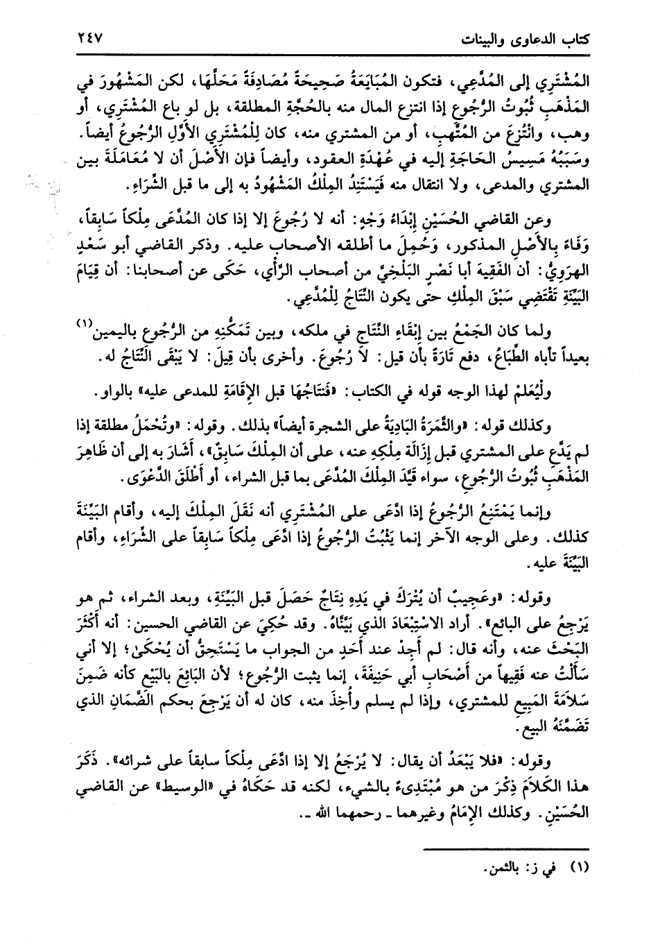 وقوله: "فلا يَبْعَدُ أن يقال: لا يُرْجَعُ إلا إذا ادَّعَى مِلْكاً سابقاً على شرائه". ذَكَرَ هذا الكَلاَمَ ذِكْرَ من هو مُبْتَدِئٌ بالشيء، لكنه قد حَكَاهُ في "الوسيط" عن القاضي الحُسَيْنِ. وكذلك الإِمَامُ وغيرهما -رحمهما الله-.