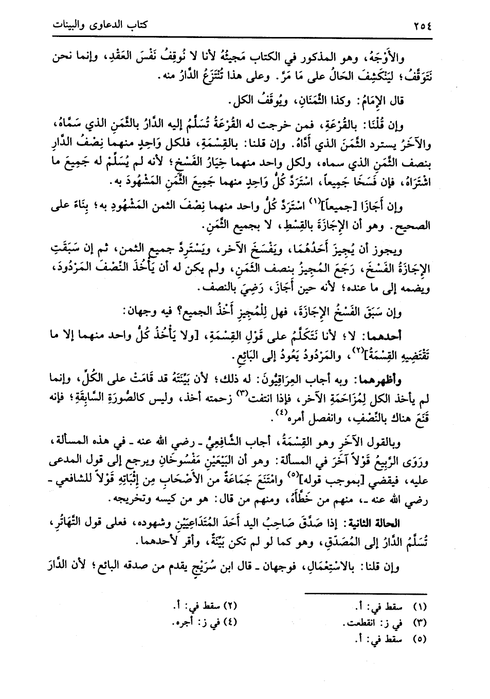 وبالقول الآخَرِ وهو القِسْمَةُ، أجاب الشَّافِعِيُّ -رضي الله عنه- في هذه المسألة، ورَوَى الرَّبِيعُ قَوْلاً آخَرَ في المسألة: وهو أن البَيْعَيْنِ مَفْسُوخَانِ ويرجع إلى قول المدعى عليه، فيقضي [بموجب قوله] (¬5) وامْتَنَعَ جَمَاعَةٌ من الأَصْحَاب مِن إِثْبَاتِهِ قَوْلاً للشافعي -رضي الله عنه-، منهم من خَطَّأَهُ، ومنهم من قال: هو من كيسَه وتخريجه.