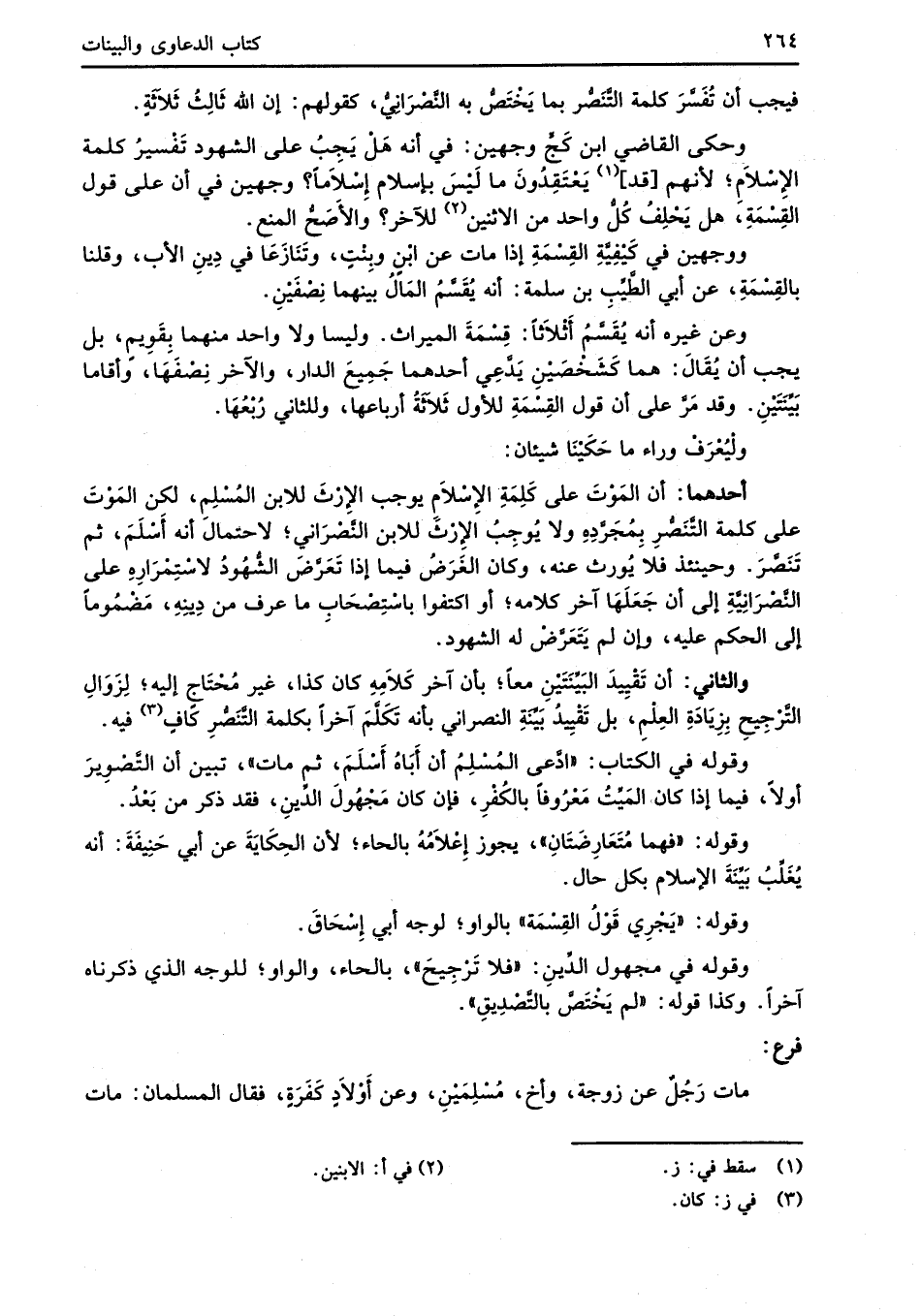 والثاني: أن تَقْييدَ البَيَّنَتَيْنِ معاً؛ بأن آخر كَلاَمِهِ كان كذا، غير مُحْتَاجٍ إليه؛ لِزَوَالِ التَّرْجِيحِ بِزِيَادَةِ العِلْمِ، بل تَقْيِيدُ بَيَّنةِ النصراني بأنه تَكَلَّمَ آخراً بكلمة التَّنَصُّرِ كافٍ (¬3) فيه.