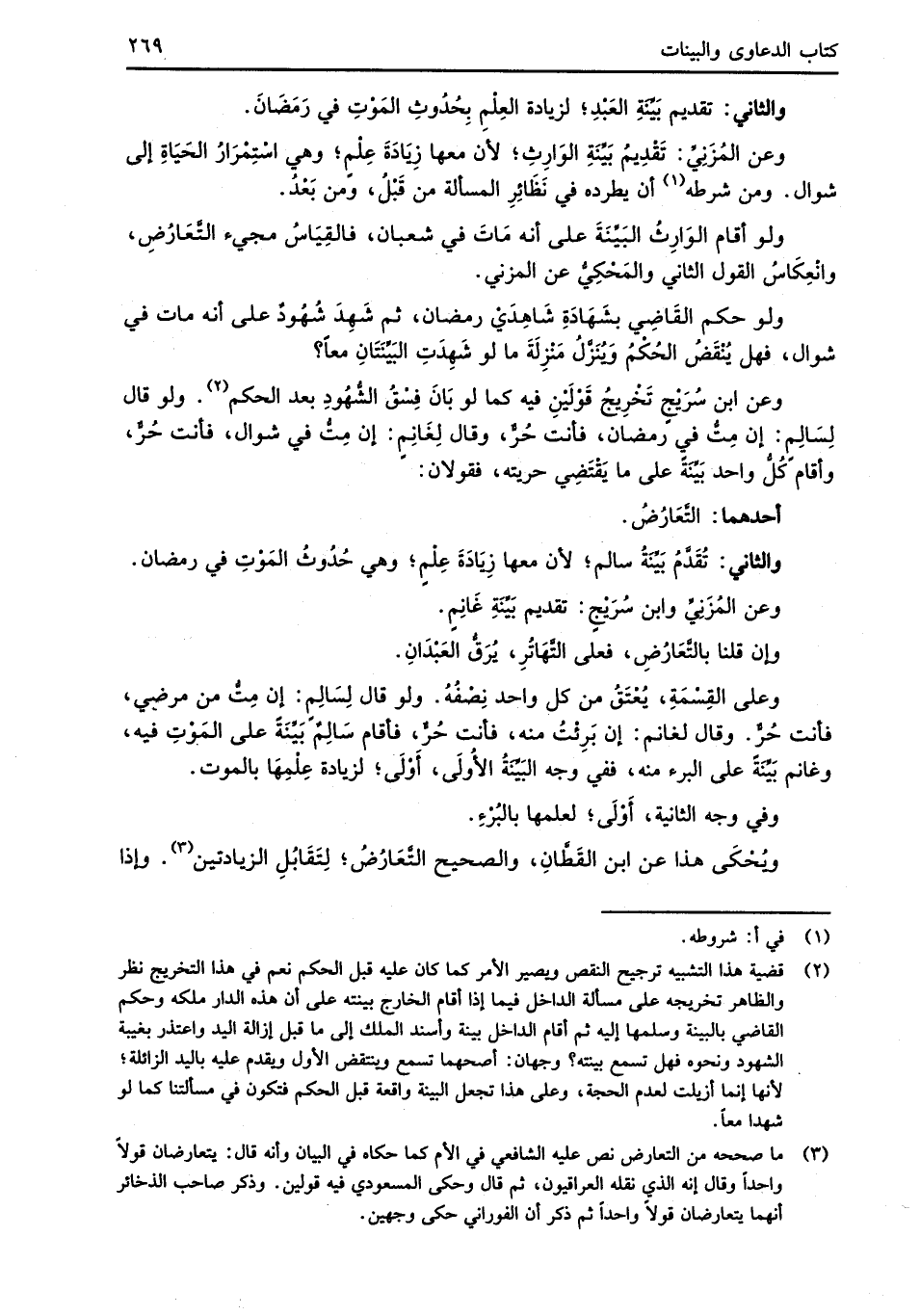 والثاني: تقديم بَيِّنَةِ العَبْدِ؛ لزيادة العِلْمِ بِحُدُوثِ المَوْتِ في رَمَضَانَ.