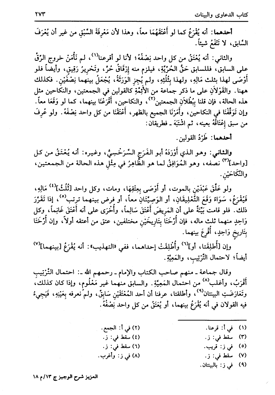 كتاب العزيز شرح الوجيز المعروف بالشرح الكبير ط العلمية (اسم الجزء: 13)