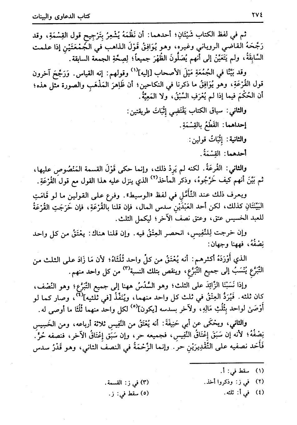 ثم في لفظ الكتاب شَيْئَانِ؛ أحدهما: أن نَظْمَهُ يُشْعِرُ بِتَرْجِيح قول القِسْمَةِ، وقد رَجَّحَهُ القاضي الروياني وغيره، وهو يُوَافِقُ قَوْلَ الذاهب في الجُمْعَتَيْنِ إذا علمت السَّابِقَةُ، ولم يَتَعَيَّنْ إلى أنهم يُصَلُّونَ الظُهْرَ جميعاً؛ لِصِحَّةِ الجمعة السابقة.