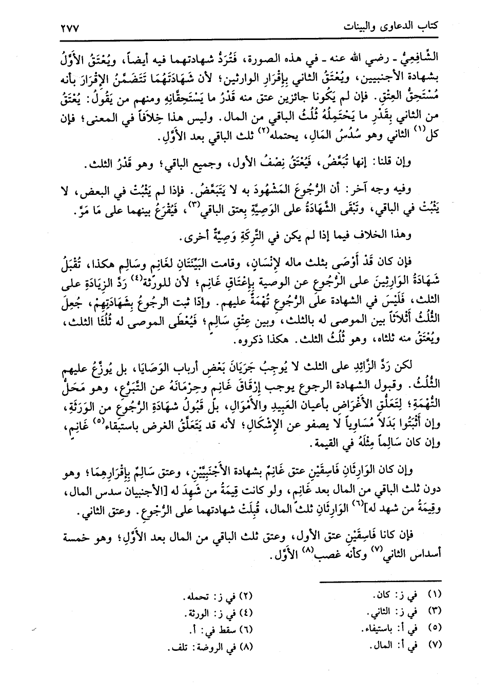 لكن رَدَّ الزَّائِدِ على الثلث لا يُوجِبُ جَرَيَانَ بَعْضِ أرباب الوَصَايَا، بل يُوزَّع عليهم الثُّلُثُ. وقبول الشهادة الرجوع يوجب إِرْقَاقَ غَانِمٍ وحِرْمَانَهُ عن التَّبَرُّعِ، وهو مَحَلُّ التُّهمَةِ؛ لِتَعَلُّق الأغْرَاضِ بأعيان العَبِيدِ والأمْوَالِ، بل قَبُولُ شهَادَةِ الرُّجُوع من الوَرَثَةِ، وإن أَثْبَتُوا بَدَلاً مُسَاوِياً لا يصفو عن الإِشْكَالِ؛ لأنه قد يَتَعَلَّقُ الغرض باستبقاء (¬5) غَانِمٍ، وإن كان سَالِماً مِثْلَهُ في القيمة.