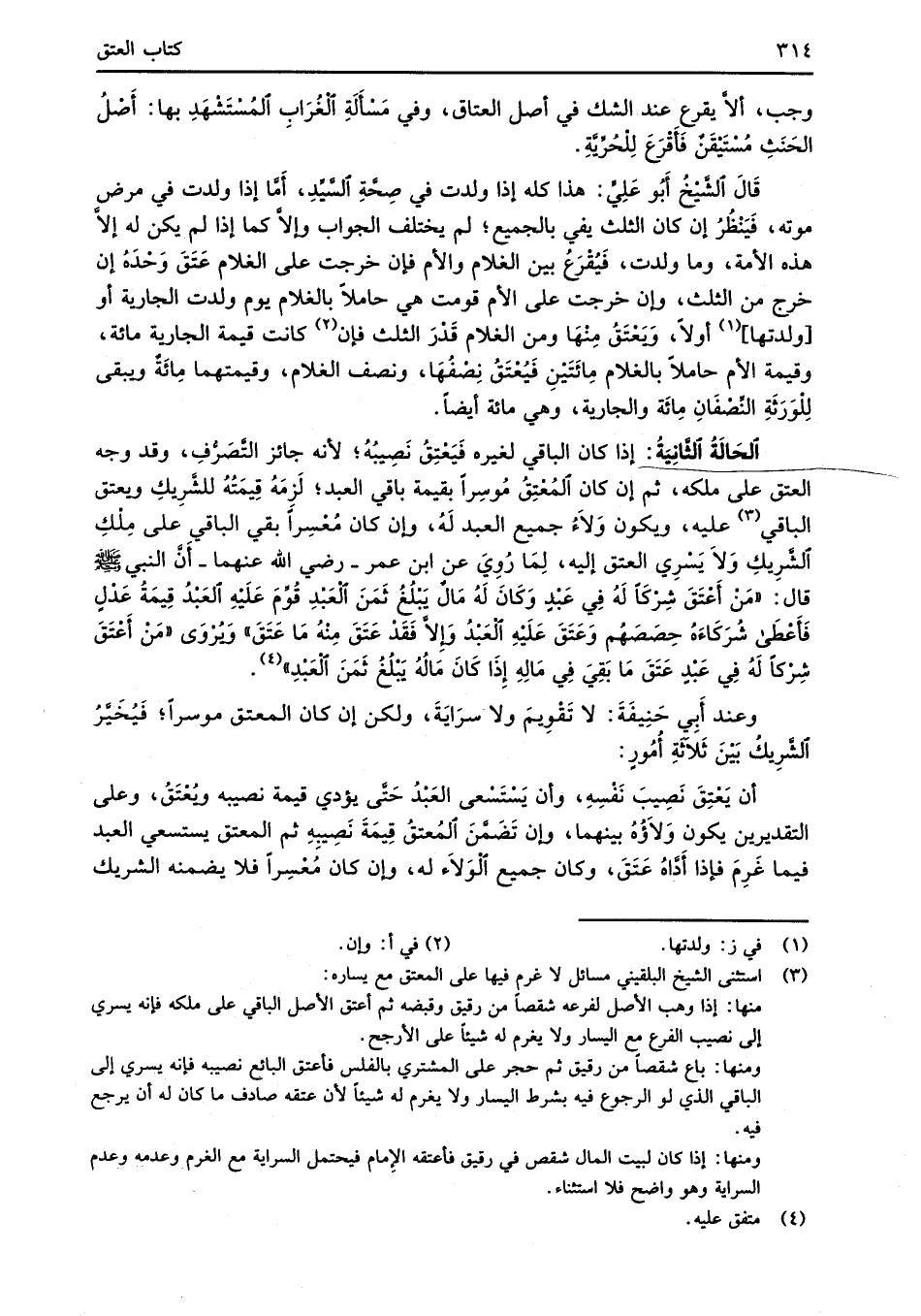 ومنها: إذا كان لبيت المال شقص في رقيق فأعتقه الإِمام فيحتمل السراية مع الغرم وعدمه وعدم السراية وهو واضح فلا استثناء.