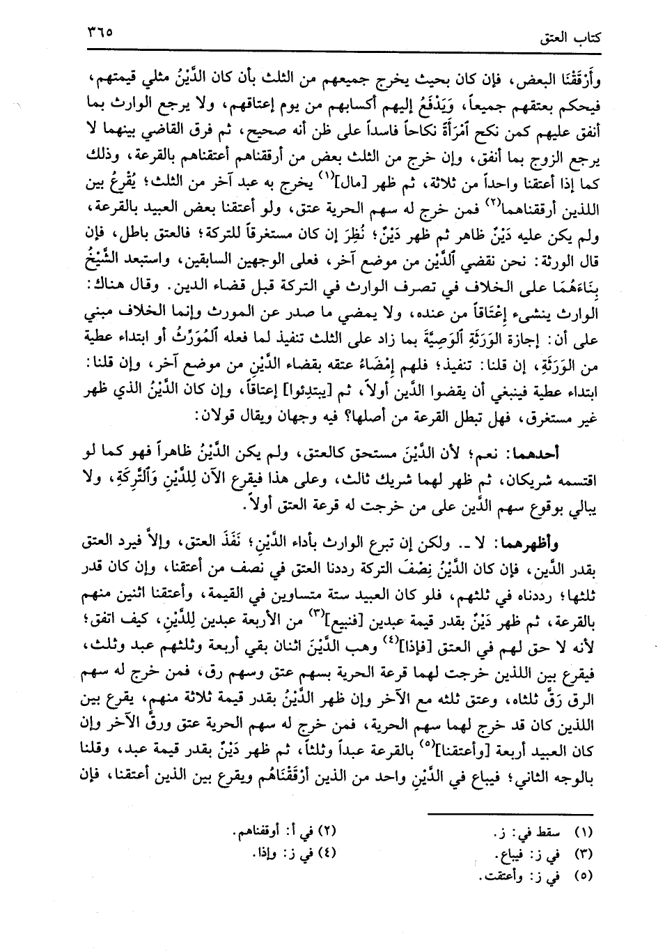 وأظهرهما: لا-. ولكن إن تبرع الوارث بأداء الدَّيْنِ؛ نَفَذَ العتق، وإلاَّ فيرد العتق بقدر الدَّين، فإن كان الدَّيْنُ نِصْفَ التركة رددنا العتق في نصف من أعتقنا، وإن كان قدر ثلثها؛ رددناه في ثلثهم، فلو كان العبيد ستة متساوين في القيمة، وأعتقنا اثنين منهم بالقرعة، ثم ظهر دَيْنٌ بقدر قيمة عبدين [فنبيع] (¬3) من الأربعة عبدين لِلدَّيْنِ، كيف اتفق؛ لأنه لا حق لهم في العتق [فإذا] (¬4) وهب الدَّيْنَ اثنان بقي أربعة وثلثهم عبد وثلث، فيقرع ببن اللذين خرجت لهما قرعة الحرية بسهم عتق وسهم رق فمن خرج له سهم الرق رَقَّ ثلثاه، وعتق ثلثه مع الآخر وإن ظهر الدَّيْنُ بقدر قيمة ثلاثة منهم، يقرع بين اللذين كان قد خرج لهما سهم الحرية، فمن خرج له سهم الحرية عتق ورقَّ الآخر وإن كان العبيد أربعة [وأعتقنا] (¬5) بالقرعة عبداً وثلثاً، ثم ظهر دَيْنٌ بقدر قيمة عبد، وقلنا بالوجه الثاني؛ فيباع في الدَّيْنِ واحد من الذين أرْقَقْنَاهُم ويقرع بين الذين أعتقنا، فإن