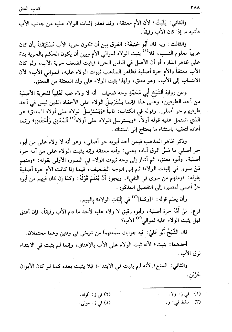 وأن يعلم قوله: " [وكذا] (¬3) في إِثْبَاتِ الولاء" بِالمِيمِ.