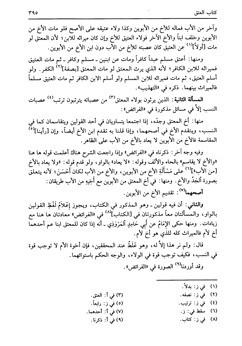 المسألة الثانية: الذين يرثون بولاء المعتق (¬3) من عصباته يترتبون ترتب (¬4) عصبات النسب إلاَّ في مسائل مذكورة في "الفرائض":