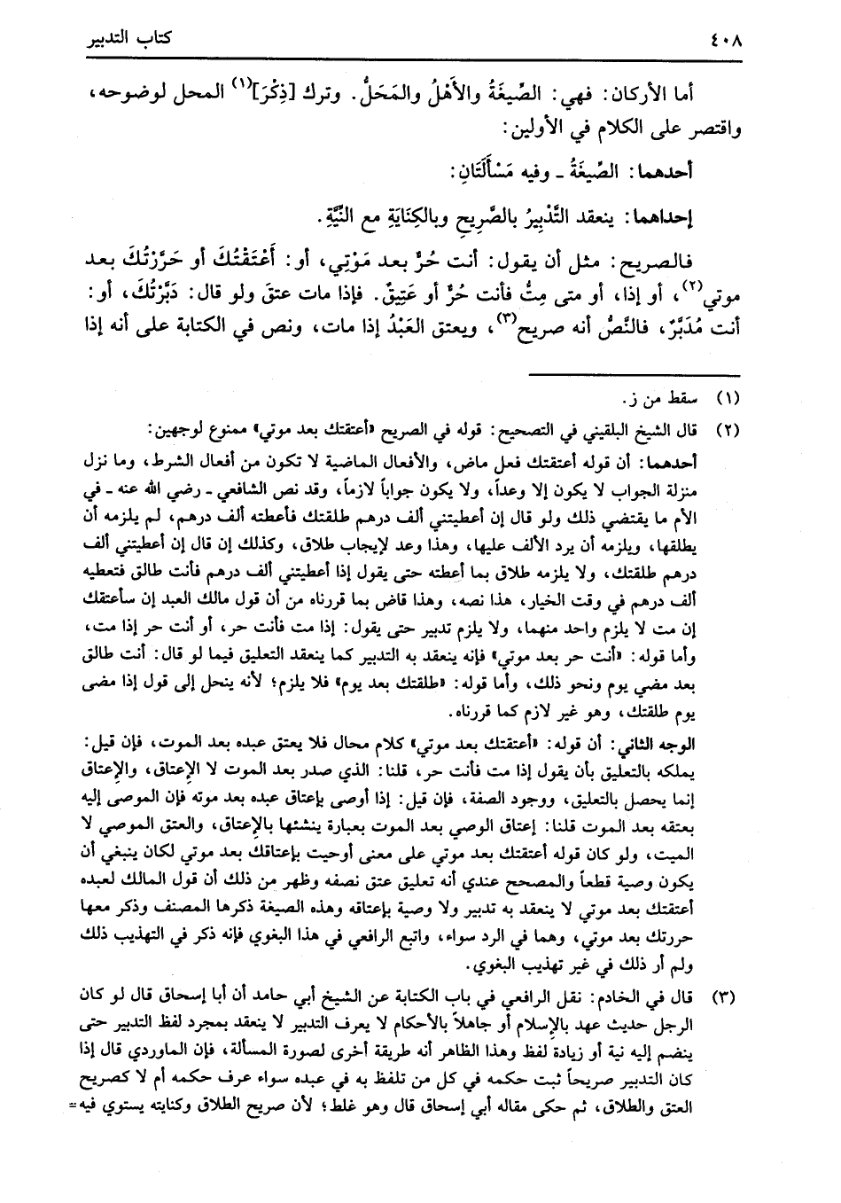 (¬2) قال الشيخ البلقيني في التصحيح: قوله في الصريح "أعتقتك بعد موتي" ممنوع لوجهين: