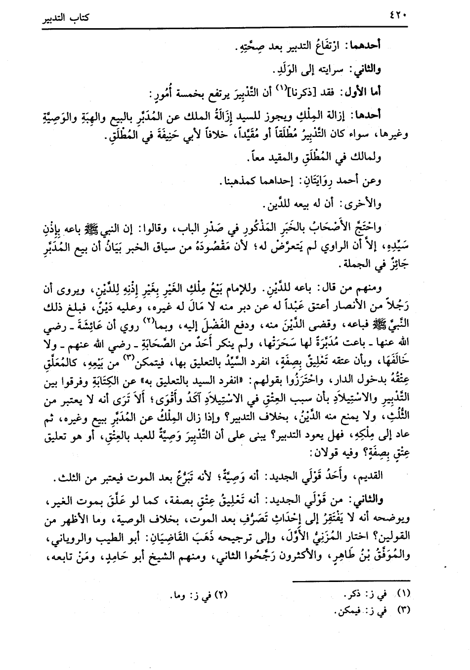 ومنهم من قال: باعه للدَّيْنِ. وللإمام بَيْعُ مِلْكِ الغَيْرِ بِغَيْرِ إِذْنِهِ لِلدَّيْنِ، ويروى أن رَجُلاً من الأنصار أعتق عَبْداً له عن دبر منه لا مَالَ له غيره، وعليه دَيْنٌ، فبلغ ذلك النَّبيَّ -صلى الله عليه وسلم- فباعه، وقضى الدَّيْنَ منه، ودفع الفَضْلَ إليه، وبما (¬2) روي أن عَائِشَةَ -رضي الله عنها- باعت مُدَبَّرَةَ لها سَحَرَتْها، ولم ينكر أَحَدٌ من الصَّحَابَةِ -رضي الله عنهم- ولا خَالَفَهَا، وبأن عتقه تَعْلِيقٌ بِصِفَةٍ، انفرد السَّيِّدُ بالتعليق بها، فيتمكن (¬3) من بَيْعِهِ، كالمُعَلَّقِ عِتْقُهُ بدخول الدار، واحْتَرَزُوا بقولهم: "انفرد السيد بالتعليق به" عن الكتَابَةِ وفرقوا بين التَّدْبيرِ والاسْتِيلاَدِ بأن سبب العِتْقِ في الاسْتِيلاَدِ آكَدُ وأَقْوَى؛ أَلاَ تَرَى أنه لا يعتبر من الثُّلُثَ، ولا يمنع منه الدَّيْنُ، بخلاف التدبير؟ وإذا زال المِلْكُ عن المُدَبَّرِ ببيع وغيره، ثم عاد إلى مِلْكِهِ، فهل يعود التدبير؟ يبنى على أن التَّدْبِيرَ وَصِيَّةَ للعبد بالعِتْقِ، أو هو تعليق عِتْقٍ بِصِفَةٍ؟ وفيه قولان: