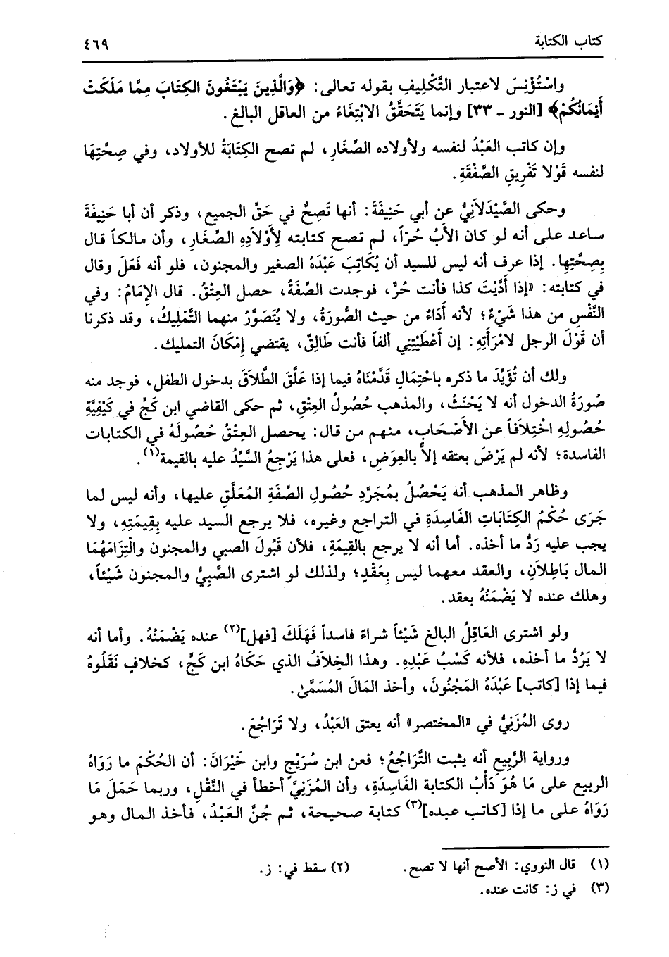 واسْتُؤْنِسَ لاعتبار التَّكْلِيفِ بقوله تعالى: {وَالَّذِينَ يَبْتَغُونَ الْكِتَابَ مِمَّا مَلَكَتْ أَيْمَانُكُمْ} [النور: 33] وإنما يَتَحَقَّقُ الابْتِغَاءُ من العاقل البالغ.