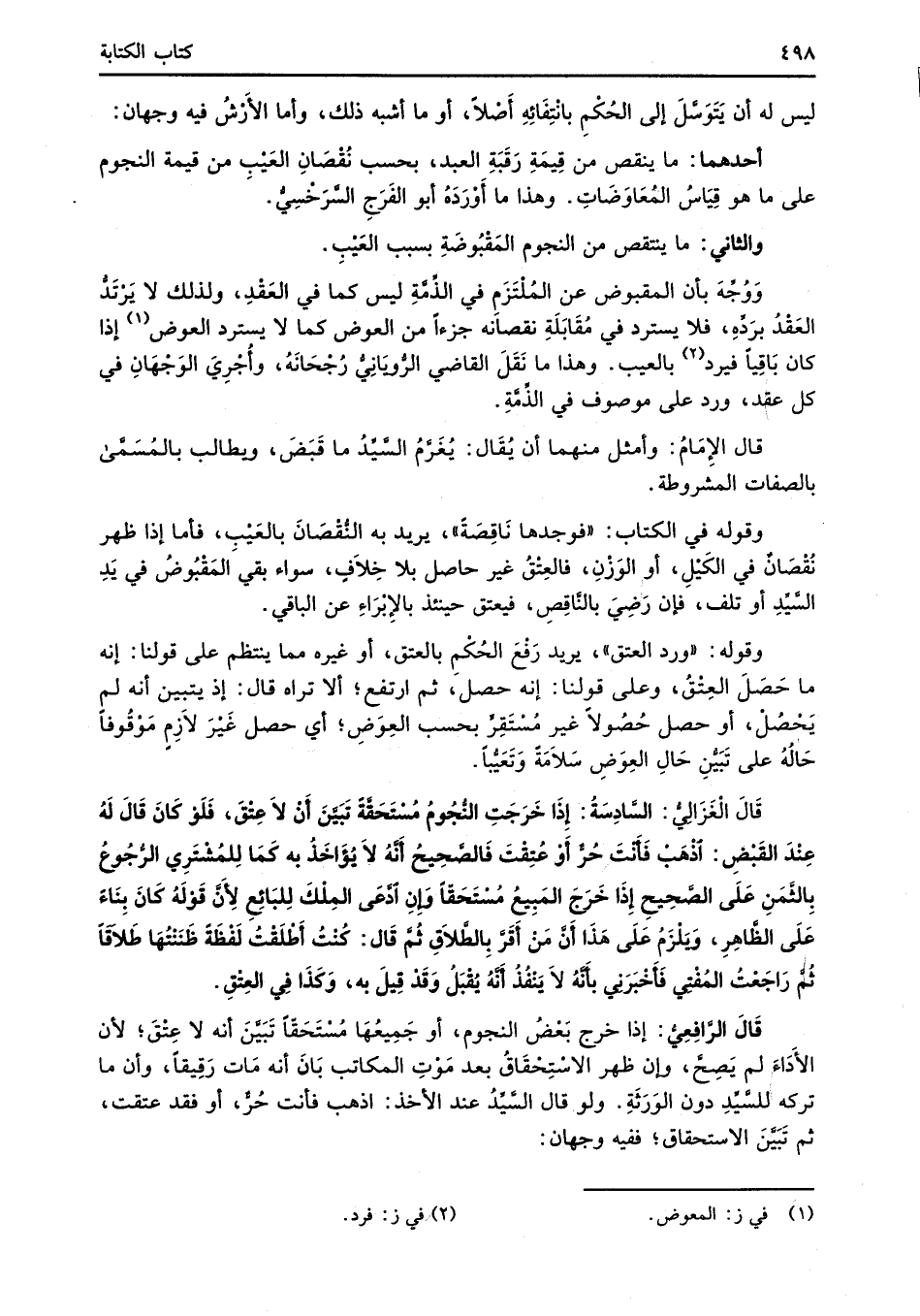 أحدهما: ما ينقص من قِيمَةِ رَقَبَةِ العبد، بحسب نُقْصَانِ العَيْبِ من قيمة النجوم على ما هو قِيَاسُ المُعَاوَضَاتِ. وهذا ما أَوْرَدَهُ أبو الفَرَجِ السَّرَخْسِىُّ.