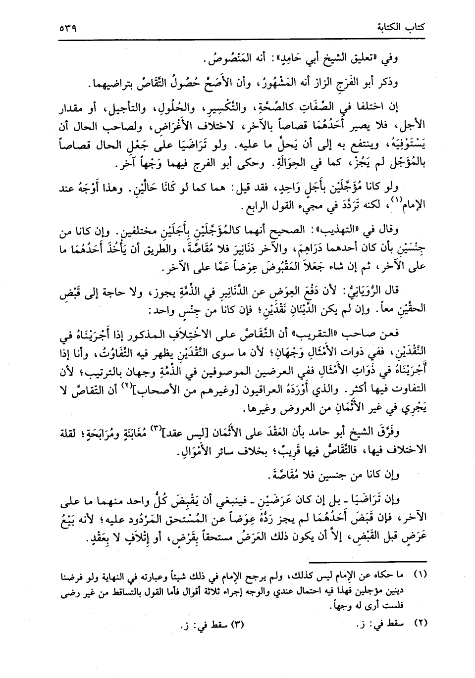 وذكر أبو الفَرَجِ الزاز أنه المَشْهُورُ، وأن الأَصَحَّ حُصُولُ التَّقَاصِّ بتراضيهما.
