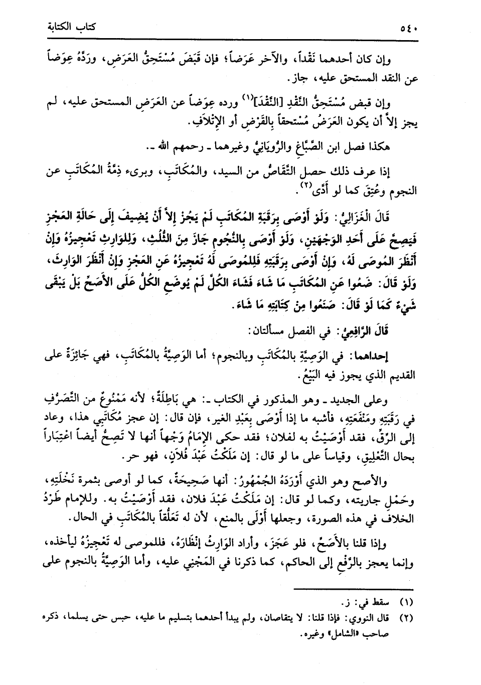إحداهما: في الوَصِيَّةِ بالمُكَاتَب وبالنجوم؛ أما الوَصِيَّة بالمُكَاتَبِ، فهي جَائِزَةٌ على القديم الذي يجوز فيه البَيْعُ.