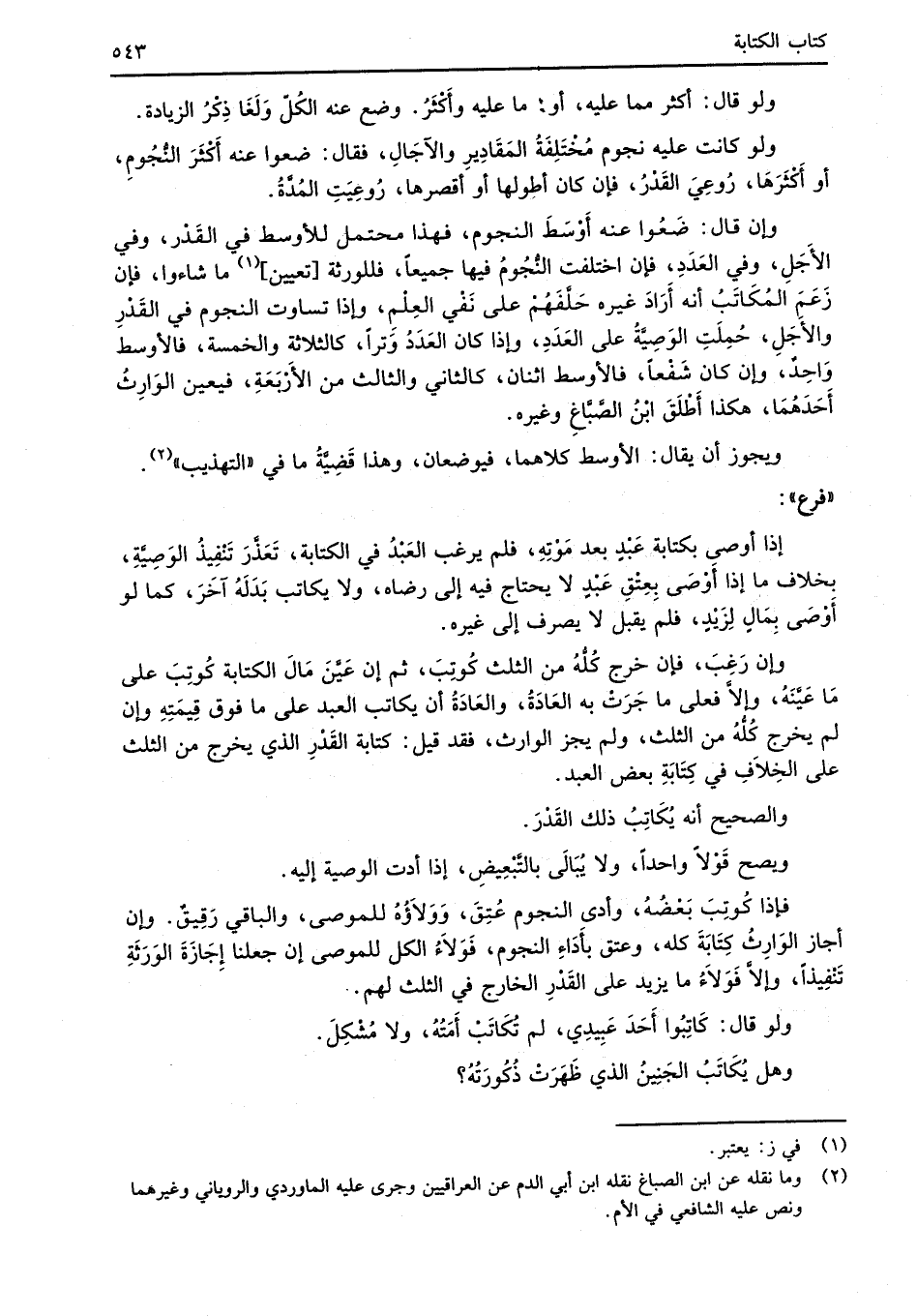 (¬2) وما نقله عن ابن الصباغ نقله ابن أبي الدم عن العراقيين وجرى عليه الماوردي والروياني وغيرهما ونص عليه الشافعي في الأم.