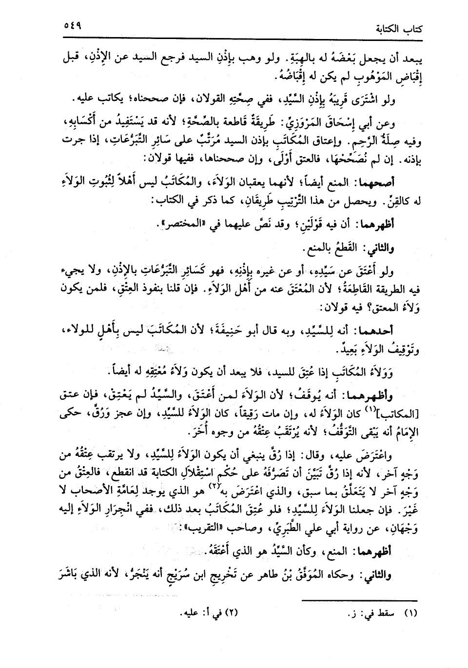 أصحهما: المنع أيضاً؛ لأنهما يعقبان الوَلاَءَ، والمُكَاتبُ ليس أهْلاً لِثُبُوتِ الوَلاَءِ له كالقِنِّ. ويحصل من هذا التَّرْتِيبِ طَرِيقَانِ، كما ذكر في الكتاب: