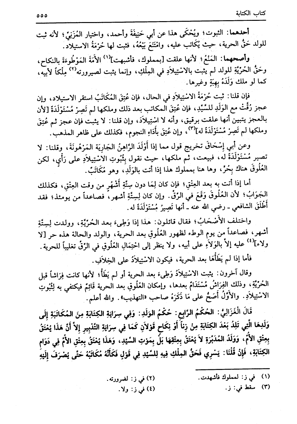 واختلف الأَصْحَابُ؛ فقال قائلون: هذا إذا وَطِئَ بعد الحُرِّيَّةِ، وولدت لِسِتَّةِ أشهر، فصاعداً من يوم الوطء لظهور العُلُوقِ بعد الحرية، والولد والحالة هذه حر [لا ولاء] (¬4) عليه إلاَّ بالوَلاَءِ على أبيه، ولا ينظر إلى احْتِمَالِ العُلُوقِ في الرِّقِّ تغليباً للحرية.