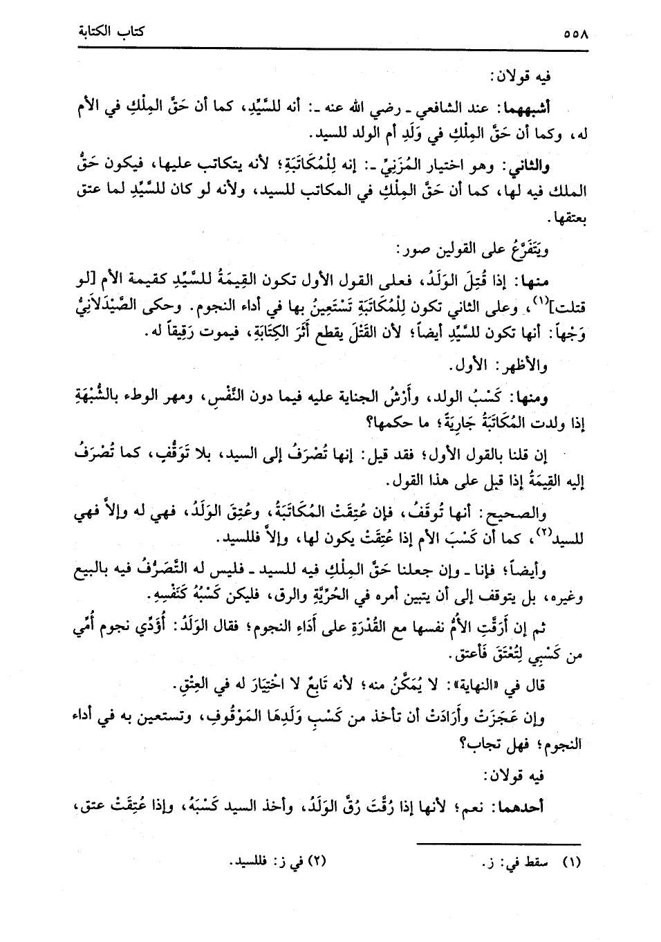 أشبههما: عند الشافعي -رضي الله عنه-: أنه للسَّيِّدِ، كما أن حَقَّ المِلْكِ في الأم له، وكما أن حَقَّ المِلْكِ في وَلَدِ أم الولد للسيد.