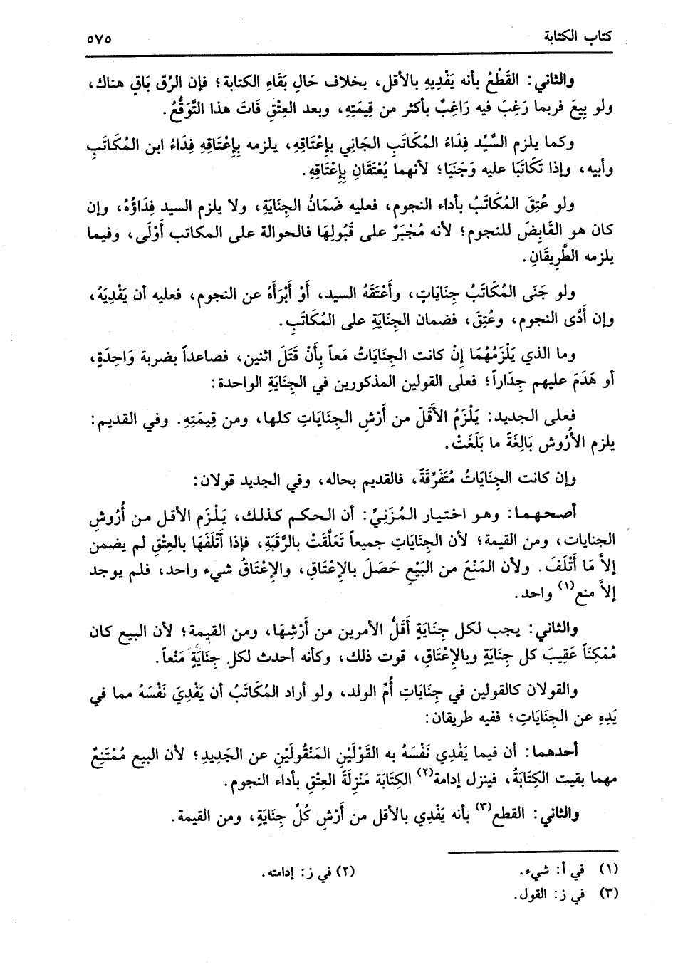 والثاني: القَطْعُ بأنه يَفْدِيهِ بالأقل، بخلاف حَالِ بَقَاءِ الكتابة؛ فإن الرِّق بَاقٍ هناك، ولو بِيعَ فربما رَغِبَ فيه رَاغِبٌ بأكثر من قِيمَتِهِ، وبعد العِتْقِ فَاتَ هذا التَّوَقُّعُ.