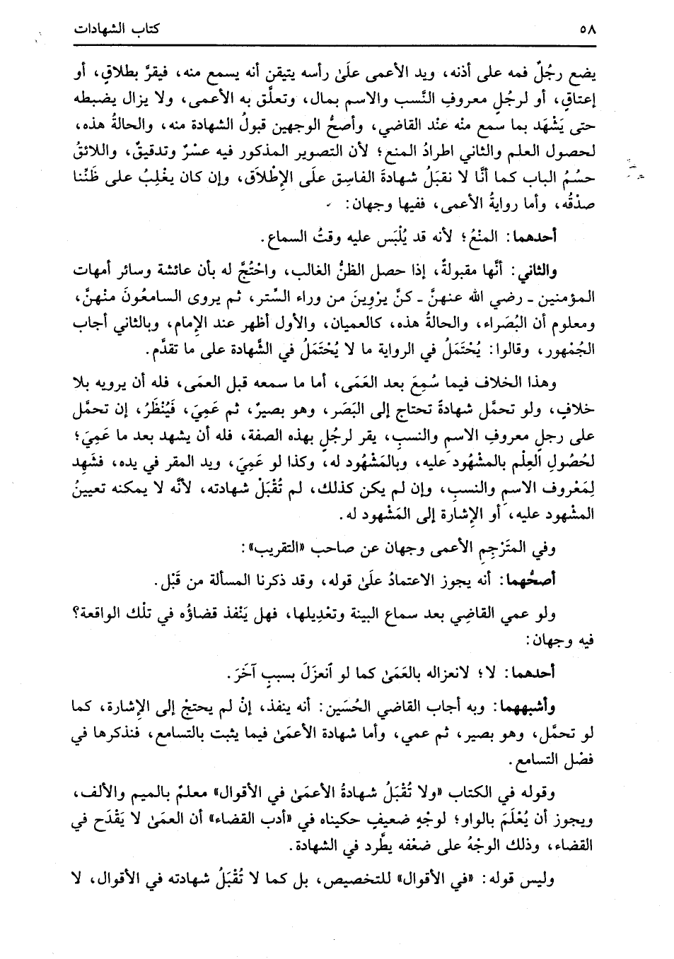 وقوله في الكتاب "ولا تُقْبَلُ شهادةُ الأعمَى في الأقوال" معلمٌ بالميم والألف، ويجوز أن يُعْلَمَ بالواو؛ لوجْهٍ ضعيفٍ حكيناه في "أدب القضاء" أن العمَى لا يَقْدَح في القضاء، وذلك الوجْهُ على ضعّفه يطَّرد في الشهادة.