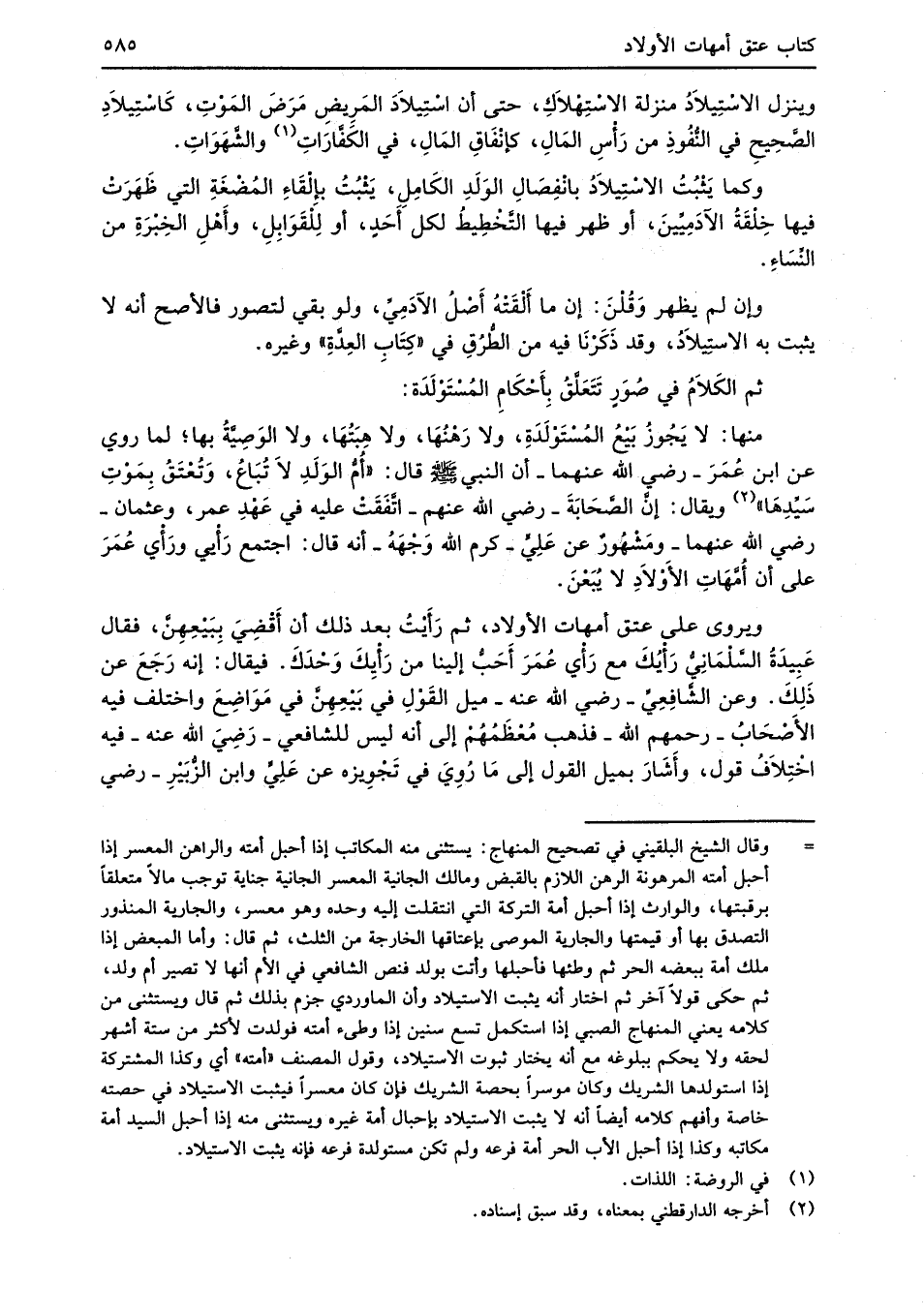 وينزل الاسْتِيلاَدُ منزلة الاسْتِهْلاَكِ، حتى أن اسْتِيلاَدَ المَرِيضِ مَرَضَ المَوْتِ، كَاسْتِيلاَدِ الصَّحِيحِ في النُّفُوذِ من رَأْسِ المَالِ، كإنْفَاقِ المَالِ، في الكَفَّارَاتِ (¬1) والشَّهَوَاتِ.
