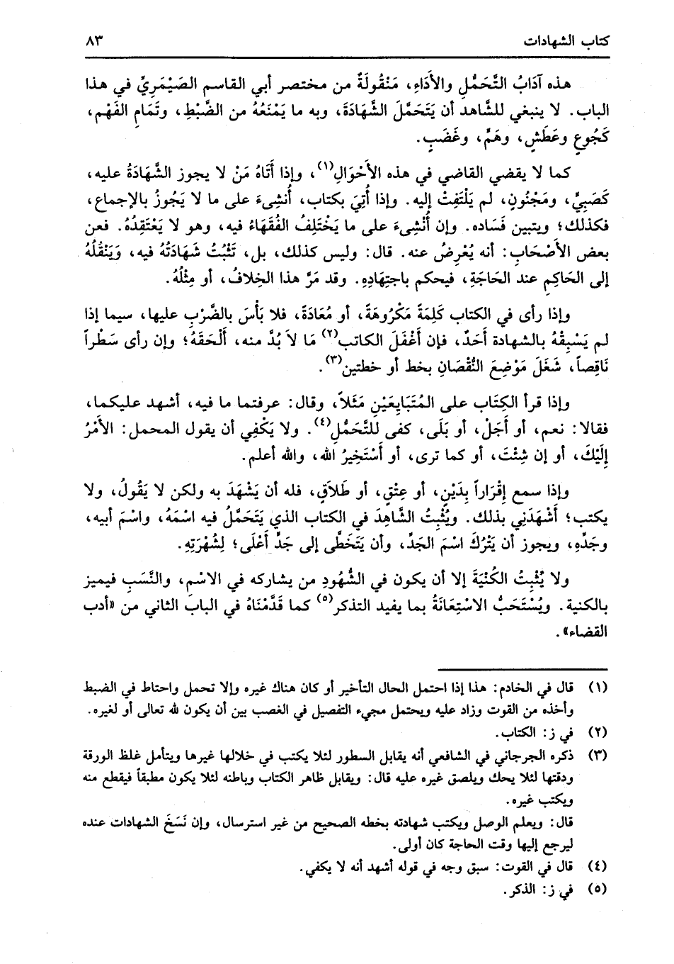 هذه آدَابُ التَّحمُّلِ والأَدَاءِ، مَنْقُولَةٌ من مختصر أبي القاسم الصَيْمَريِّ في هذا الباب. لا ينبغي للشَّاهد أن يَتَحَمَّلَ الشَّهَادَةَ، وبه ما يَمْنَعُهُ من الضَّبْطِ، وتَمَامِ الفَهْم، كجُوعٍ وعَطَشٍ، وهَمٍّ، وغَضَبٍ.