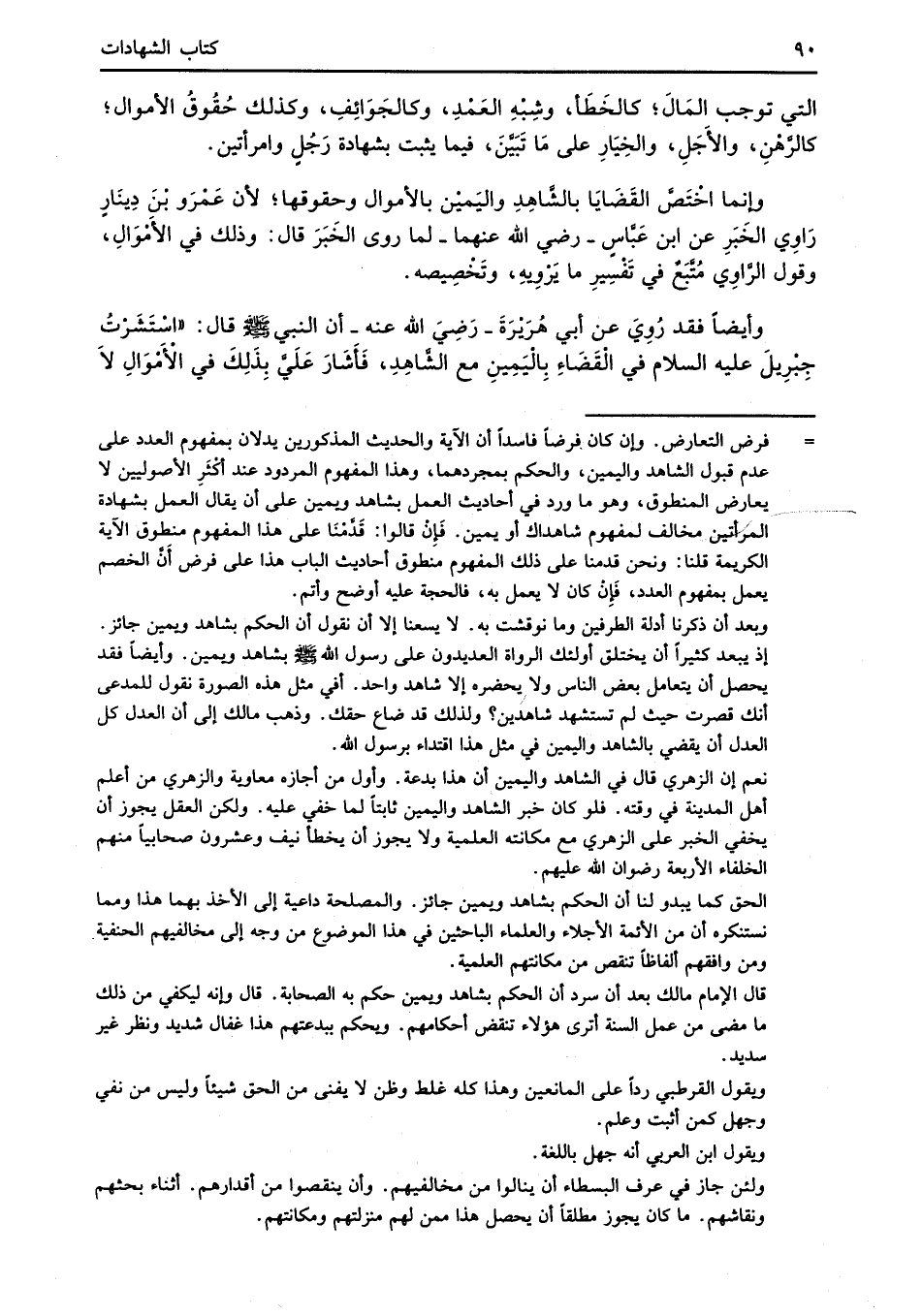 وإنما اخْتَصَّ القَضَايَا بالشَّاهِدِ واليَمْين بالأموال وحقوقها؛ لأن عَمْرَو بْنَ دِينَارٍ رَاوِي الخَبَرِ عن ابن عَبَّاسٍ -رضي الله عنهما- لما روى الخَبَرَ قال: وذلك في الأَمْوَالِ، وقول الرَّاوِي مُتَّبَعٌ في تَفْسِيرِ ما يَرْوِيهِ، وتَخْصِيصه.