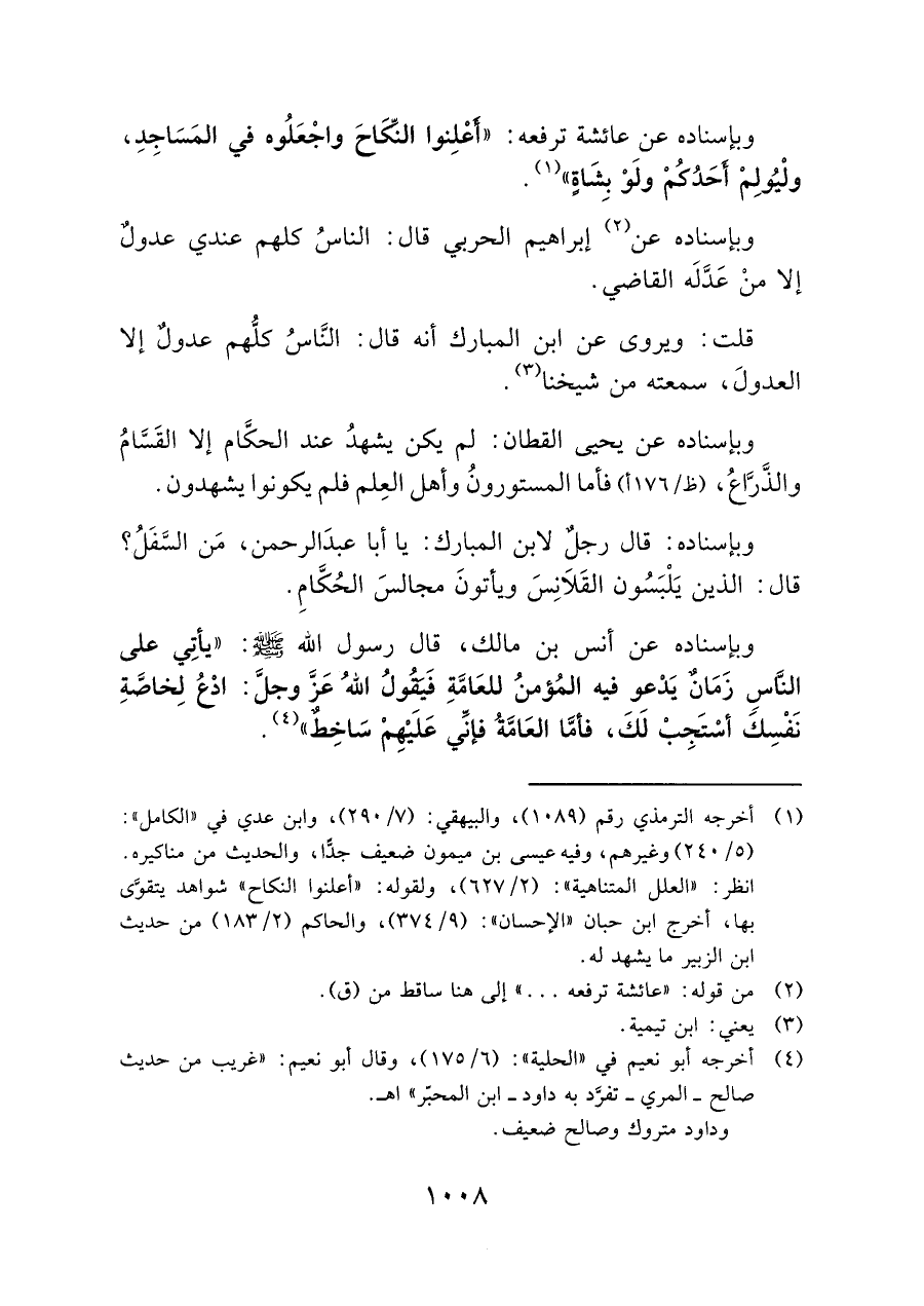 (¬١) أخرجه الترمذي رقم (١٠٨٩) والبيهقي: (٧/ ٢٩٠)، وابن عدي في "الكامل": (٥/ ٢٤٠) وغيرهم، وفيه عيسى بن ميمون ضعيف جدًّا، والحديث من مناكيره. انظر: "العلل المتناهية": (٢/ ٦٢٧)، ولقوله: "أعلنوا النكاح" شواهد يتقوَّى بها، أخرج ابن حبان "الإحسان": (٩/ ٣٧٤)، والحاكم (٢/ ١٨٣) من حديث ابن الزبير ما يشهد له.