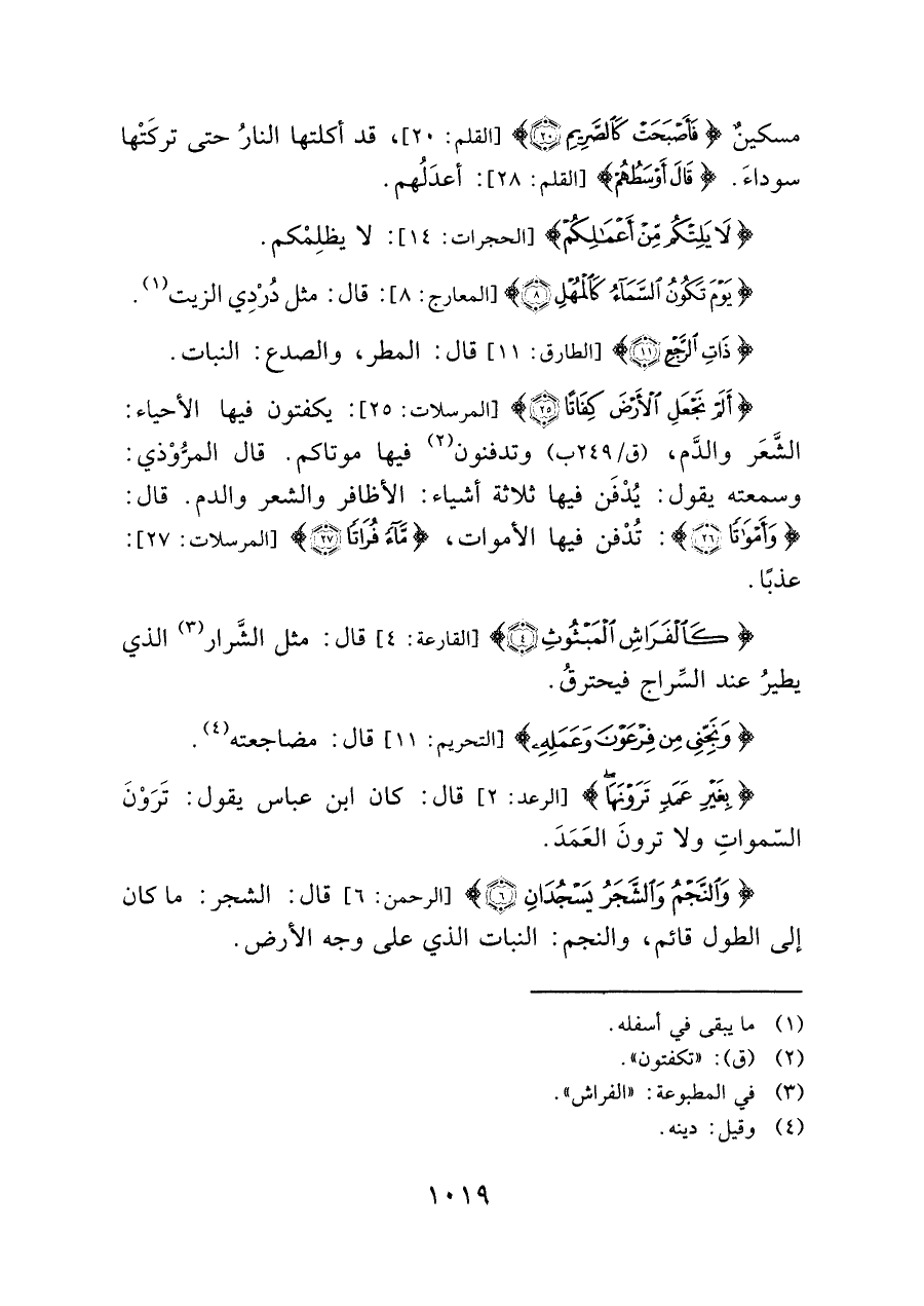 {كَالْفَرَاشِ الْمَبْثُوثِ (٤)} [القارعة: ٤] قال: مثل الشَّرار (¬٣) الذي يطيرُ عند السِّراج فيحترقُ.