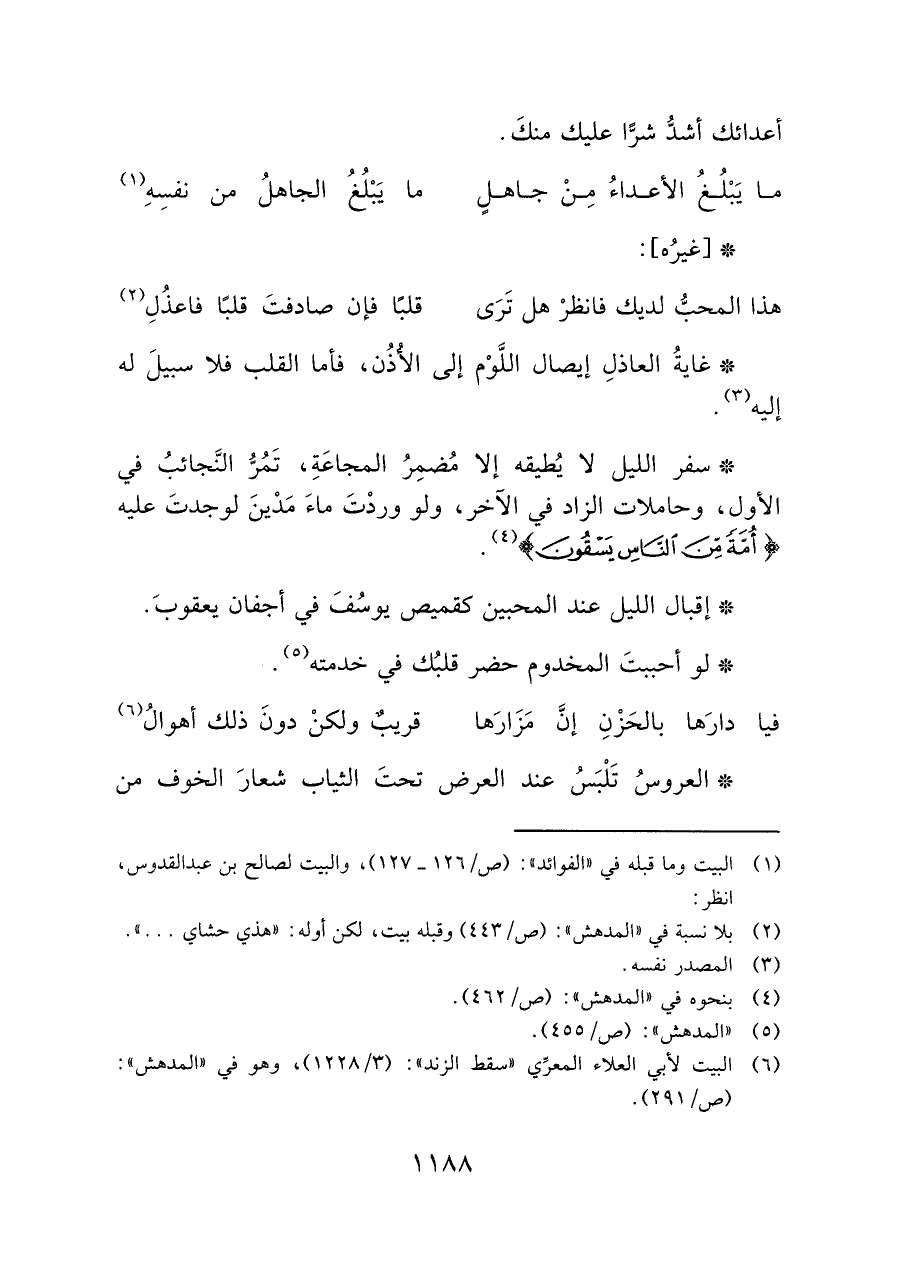 (¬٦) البيت لأبي العلاء المعرِّي "سقط الزند": (٣/ ١٢٢٨)، وهو في "المدهش": (ص/٢٩١).