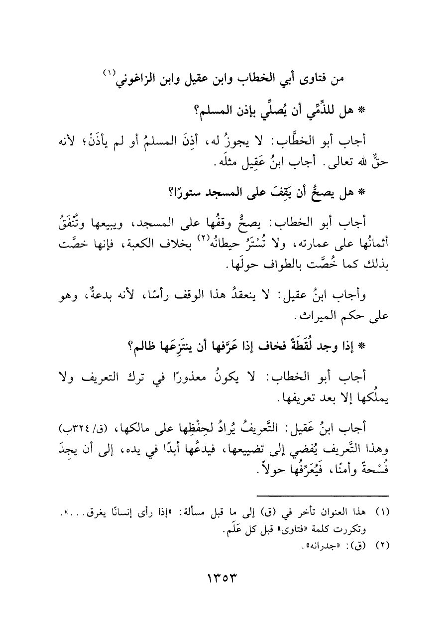 من فتاوى أبي الخطاب وابن عقيل وابن الزاغوني (¬١)