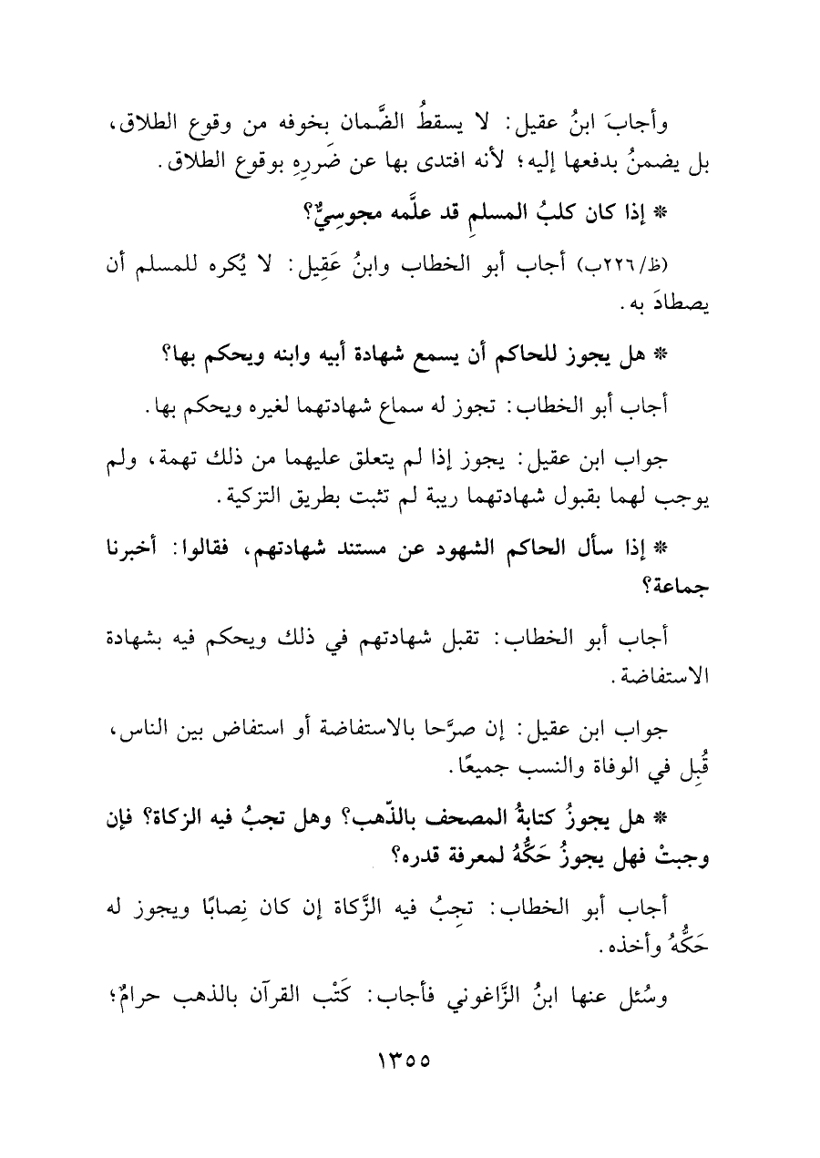 جواب ابن عقيل: إن صرَّحا بالاستفاضة أو استفاض بين النَّاس، قبِل في الوفاة والنسب جميعًا.